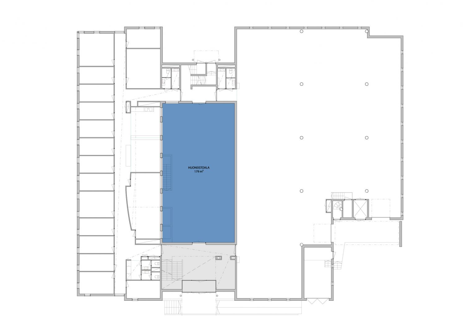Rakennuksella on runsaasti omia autopaikkoja (33 kpl) ja mahtavat puitteet sosiaalitiloille, joista saa pienellä päivityksellä haluamansa tasoiset.