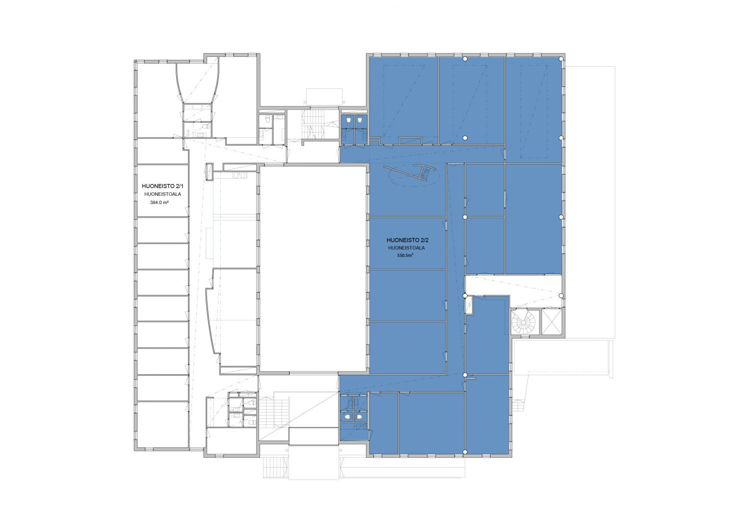 Rakennuksella on runsaasti omia autopaikkoja (33 kpl) ja mahtavat puitteet sosiaalitiloille, joista saa pienellä päivityksellä haluamansa tasoiset.