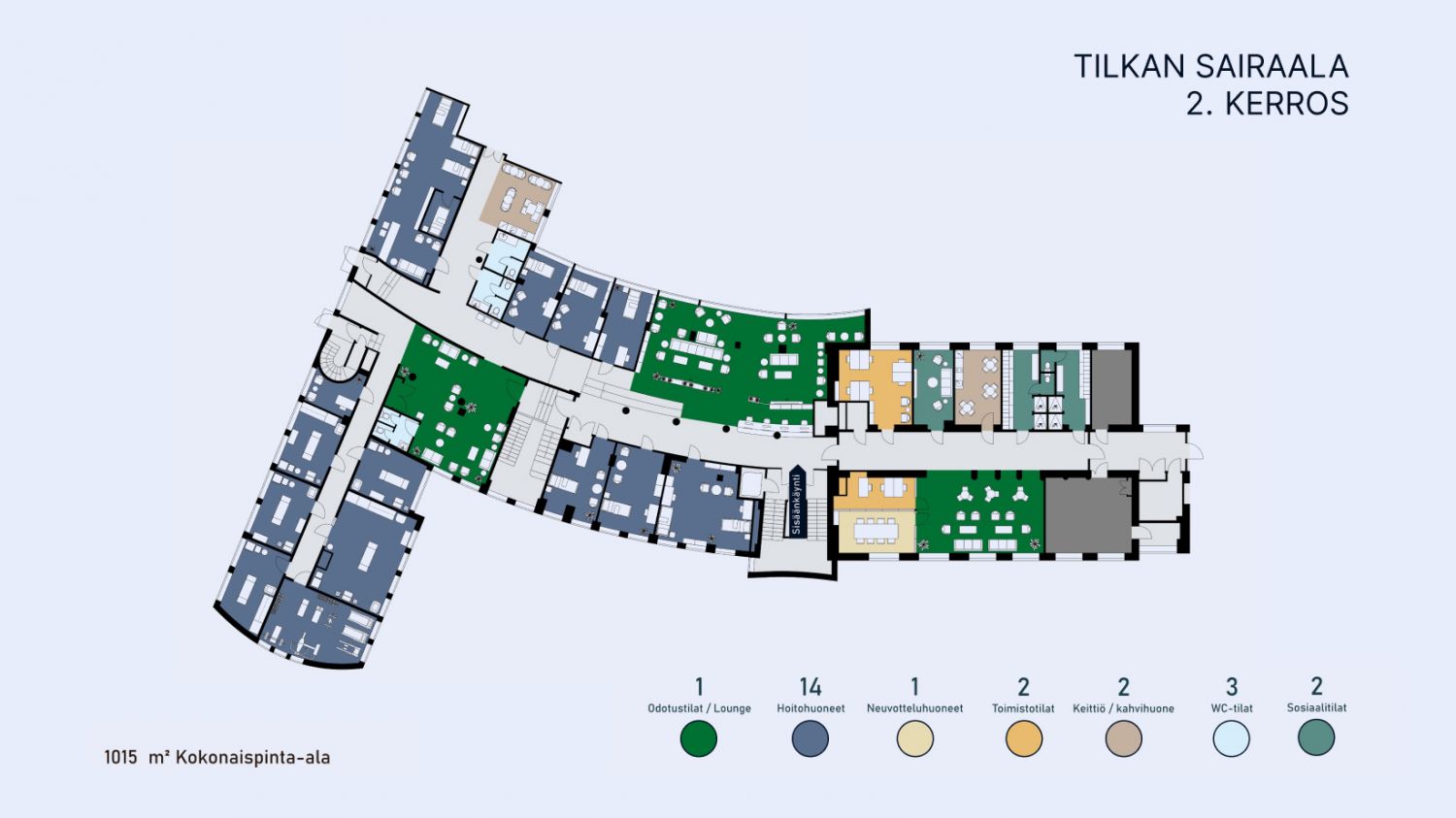 Muuntojoustavaa monipuolista tilaa, joka soveltuu erityisesti terveys- ja hoivatoiminnalle. Tilassa on erillisiä huoneita ja se on mahdollista avata isommaksi avotilakokonaisuudeksi. Tilan päätyosassa on henkilökunnalle erilliset sosiaalitilat. Tilaan on kaksi sisäänkäyntiä.