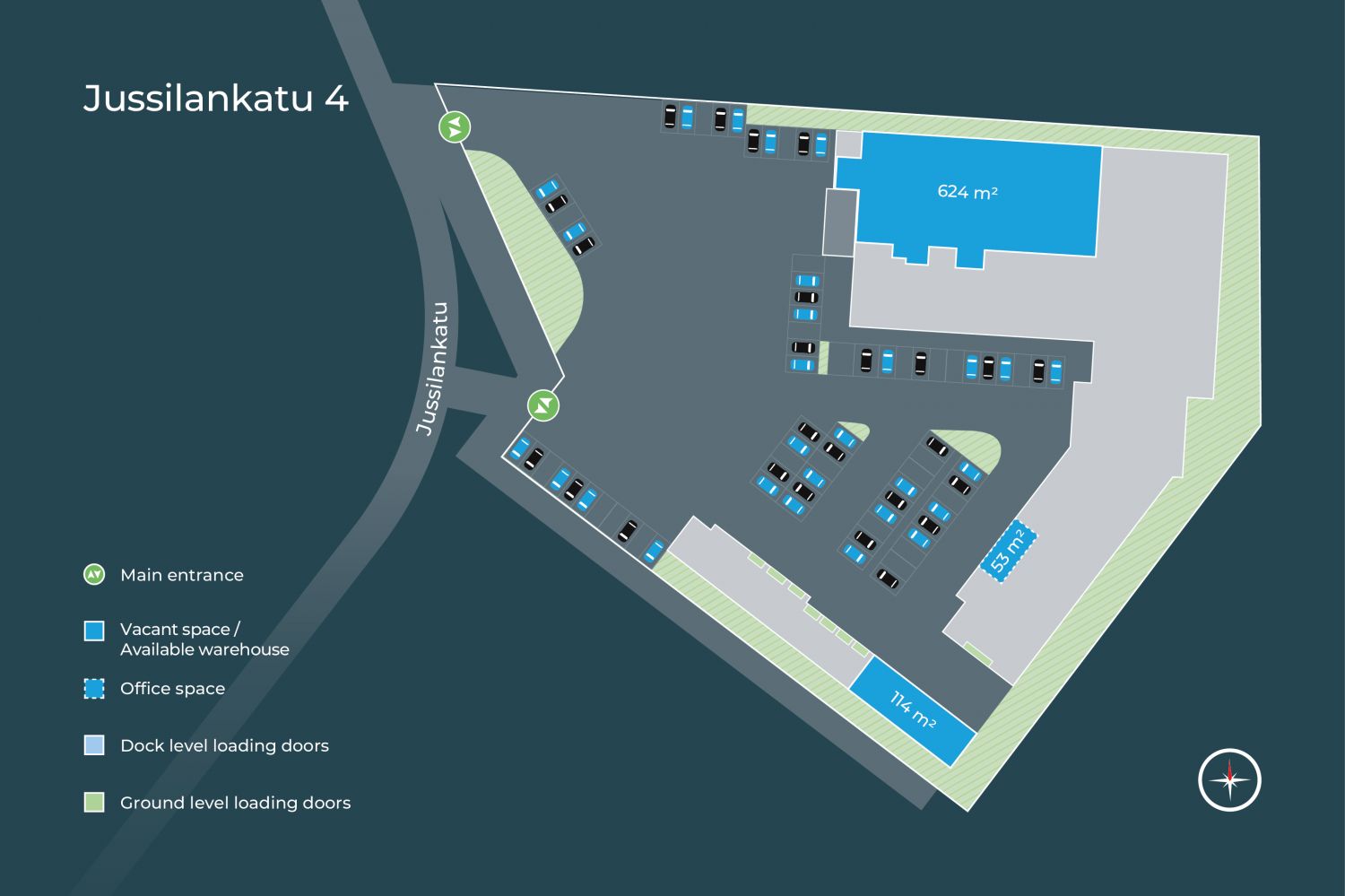 Hyväkuntoisen teollisuus/varastorakennuksen kokonaispinta-ala on 2.574 m2. Kiinteistö on valmistunut vuonna 2004. Kiinteistöllä on laaja piha-alue missä on runsaasti pysäköintipaikkoja. Kiinteistö sijaitsee Lahden Renkomäessä tilaa vievän kaupan alueella.