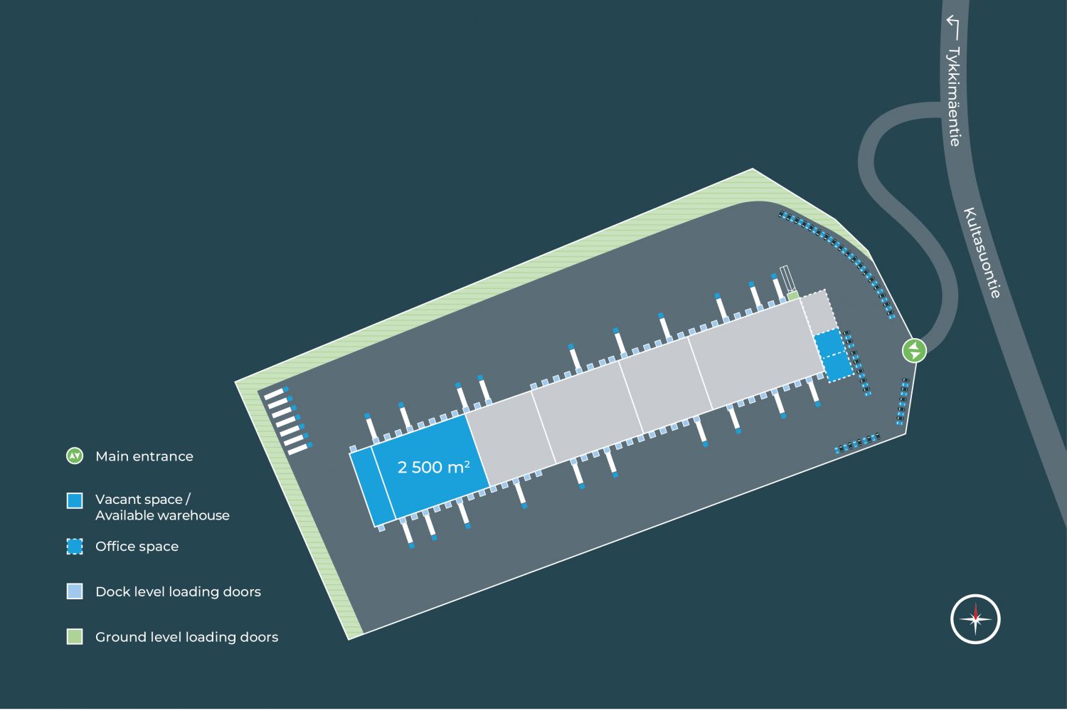 Tehokasta ja toimivaa lastaus- ja purkutoimintaa varten kiinteistössä on yhteensä 71 lastaustaskua. Kiinteistössä on myös kylmävarastointitiloja ja varastotilat on mahdollista jakaa erilaisiin tilakokonaisuuksiin käyttäjän tarpeiden mukaan.