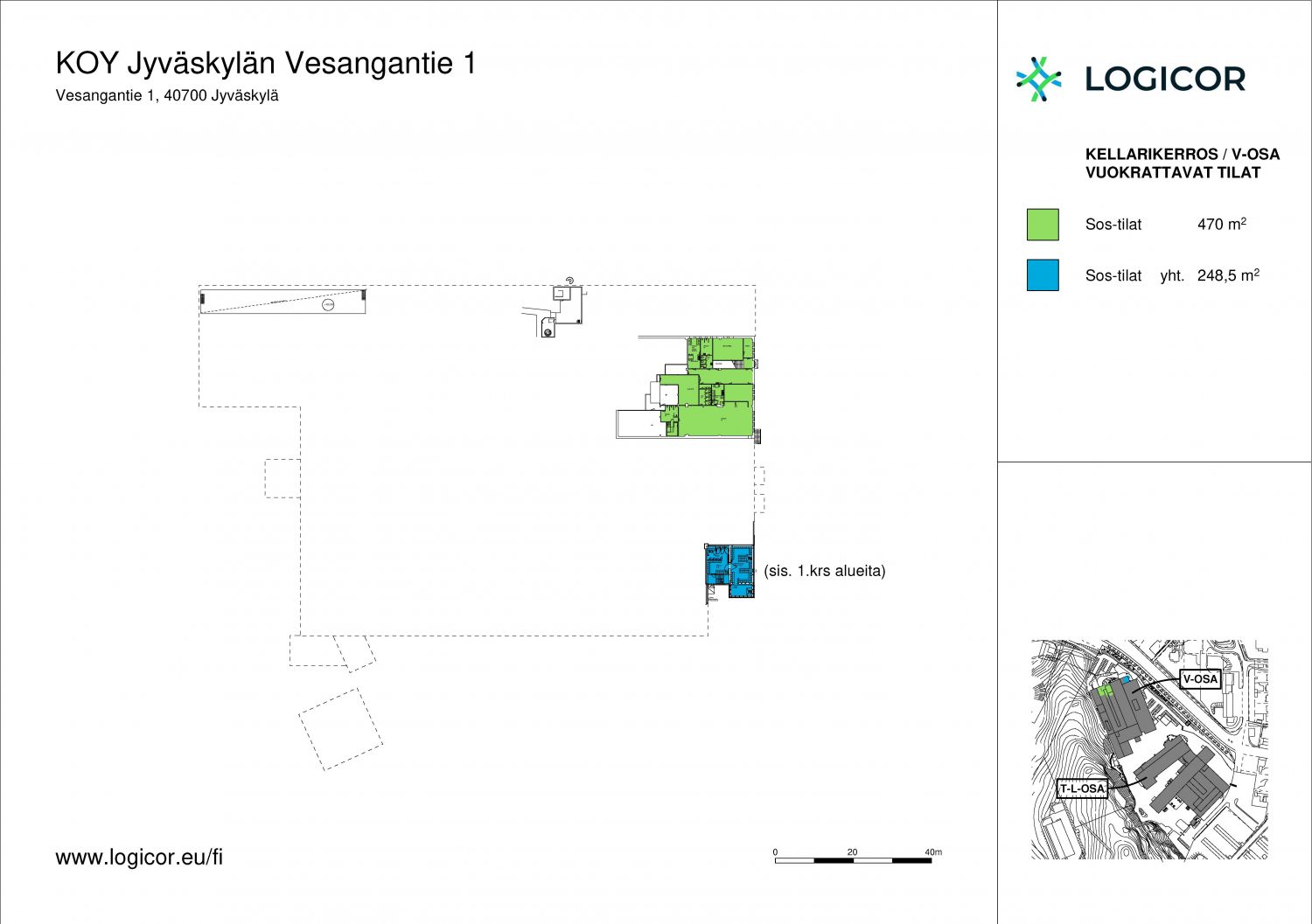 Varasto-/ tuotantotila (V2c), jonka läheisyydessä sisäyhteydellä on vuokrattavissa myös toimisto- ja sosiaalitilat henkilökunnan tarpeisiin. Tähän tilaan on mahdollista toteuttaa maatason nosto-ovet tai vuokrata laajempi tilakokonaisuus (V2a-c), joissa on valmiina maatason nosto-ovet. Tilan maksimikorkeus vaihtelee alueittain, noin 4,5-8 metriä.