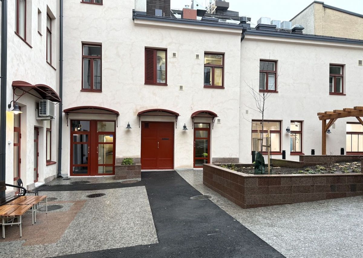 Talon sisäpihalle on rakennettu viihtyisä viherpiha, joka on talon vuokralaisten käytettävissä. Sisäpihalla sijaitsee myös harvinainen hirsitalo vuodelta 1875.