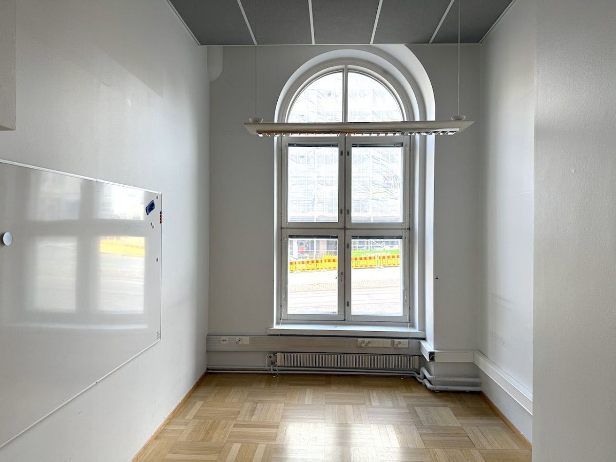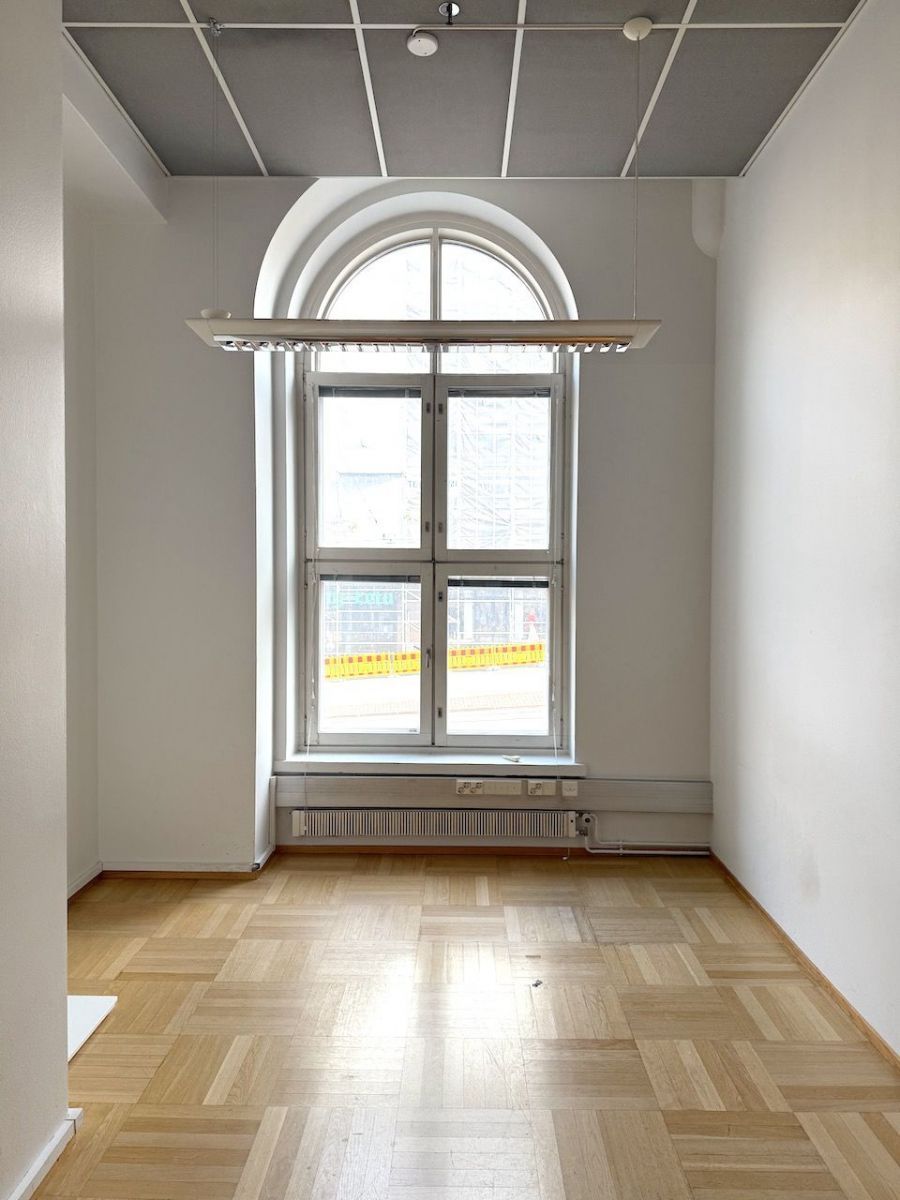 Vuokrataan hieno toimistotila Erottajalta. Tila remontoidaan seuraavan käyttäjän toiveiden ja tarpeiden mukaisesti. Korkeassa ja avarassa toimistossa on hienot kaari-ikkunat, joista näkymät Erottajalle. Ilmoituksen pohjakuvat ovat suunnitelmia ja niistä voidaan hyvin poiketa.