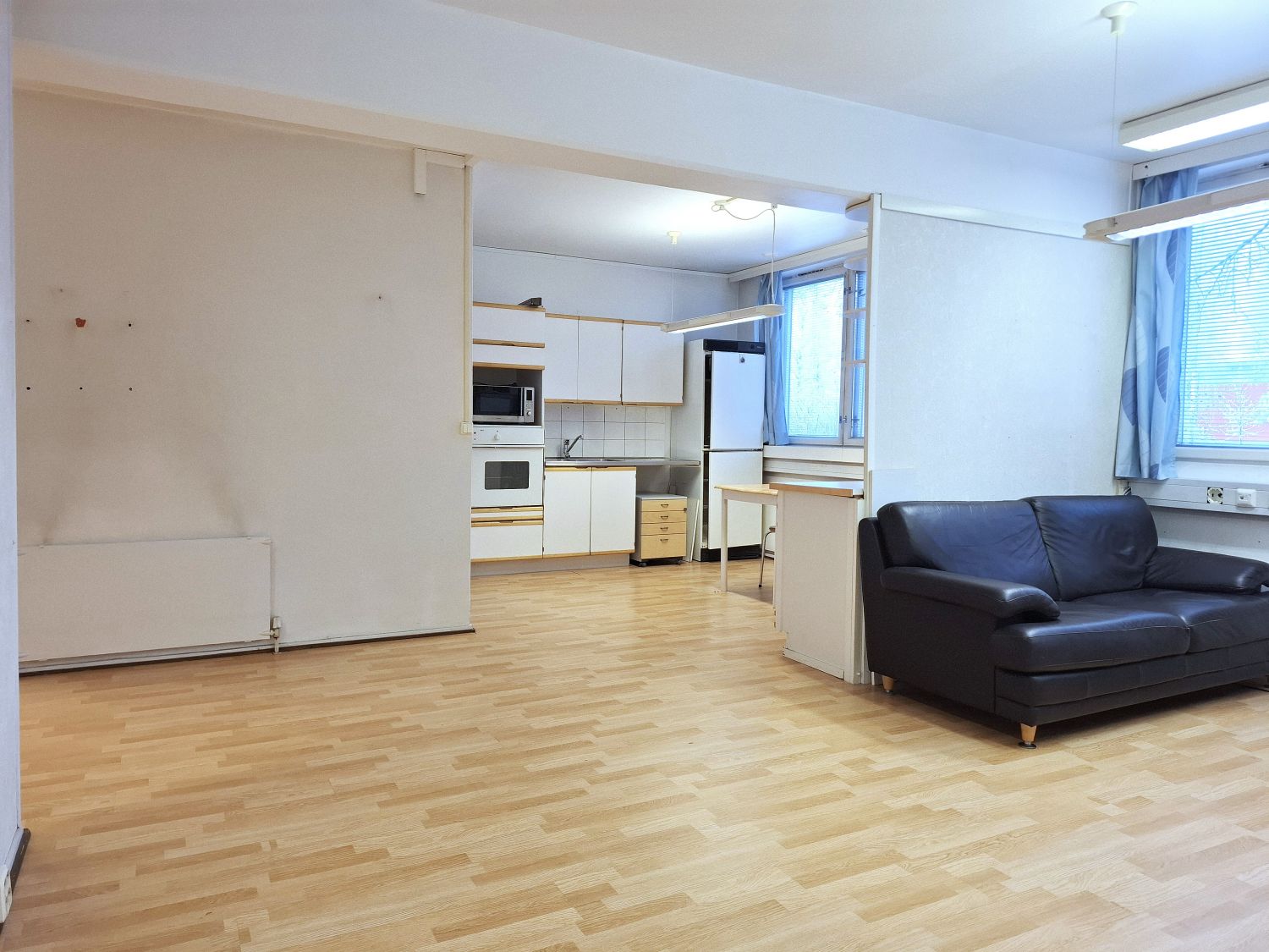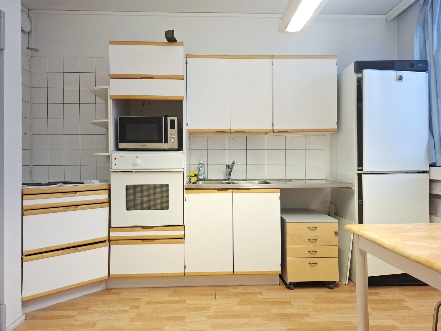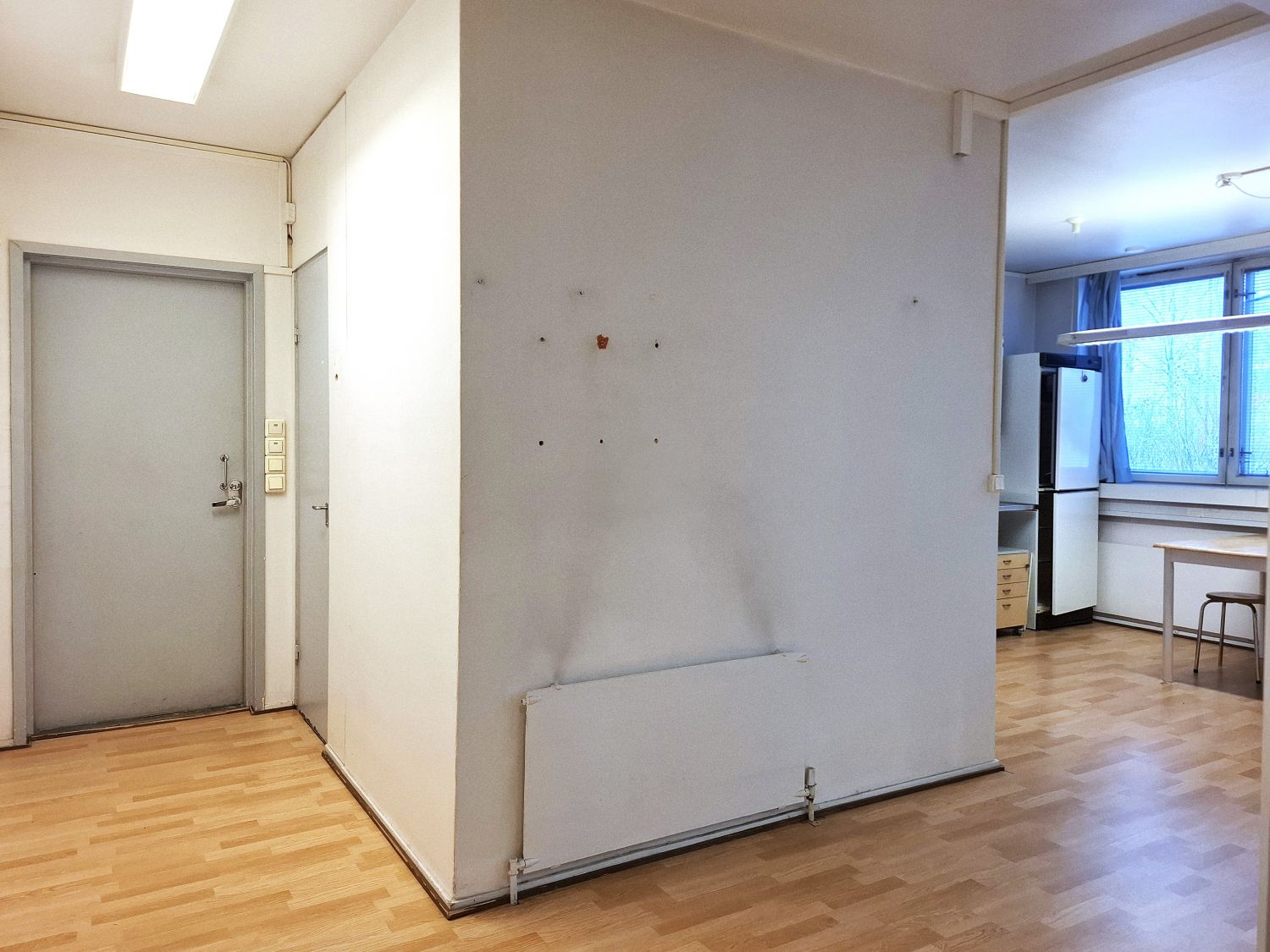 Tila sijaitsee talon päädyssä katutasossa ja koostuu isommasta avotilasta, kahdesta erillisestä toimistohuoneesta, wc:stä sekä avokeittiötilasta, jossa varustukseen kuuluu jääkaappi/pakastin ja liesi. Tila soveltuu erinomaisesti toimistokäyttöön tai esim. fysioterapeutin tarpeeseen. Tiloissa koneellinen ilmanvaihto ja hyvä valaistus. Tilaan mahdollisuus ottaa kiinteä nettiyhteys.