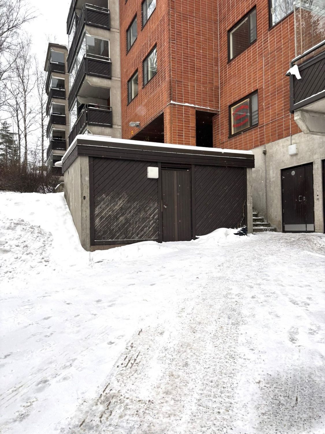 Rakennusmateriaali: tiili/betoni.