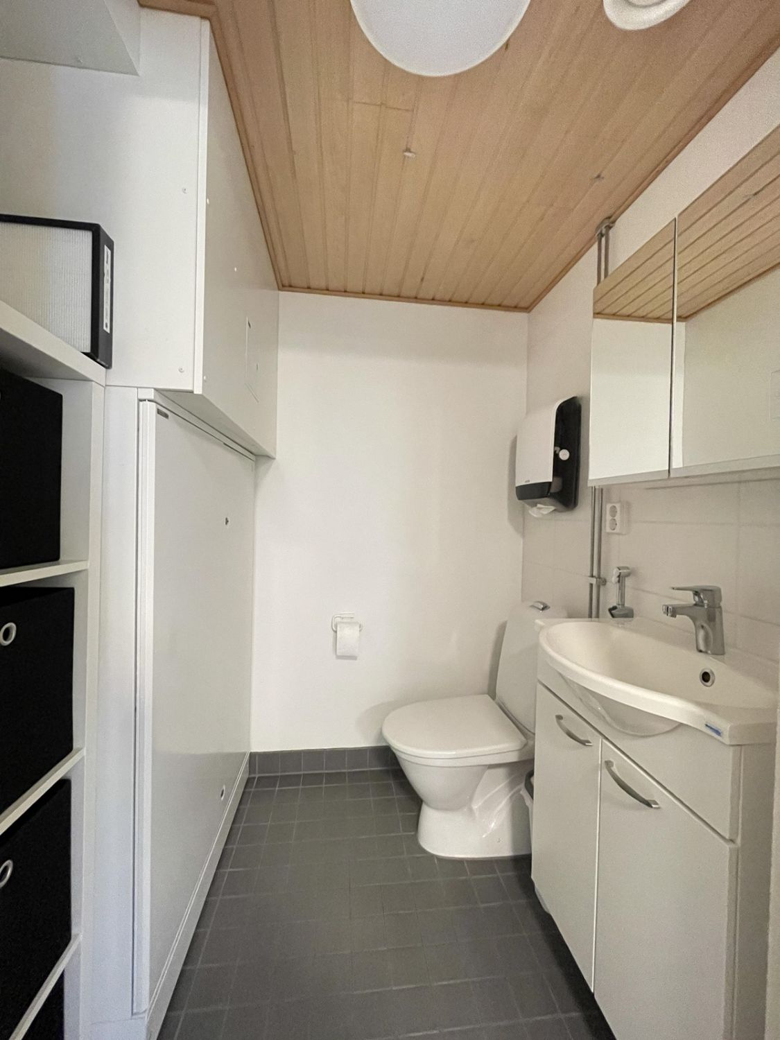 Liiketila, joka koostuu aulasta, työhuoneesta, takahuoneesta, jossa minikeittiö, sekä wc:stä.
