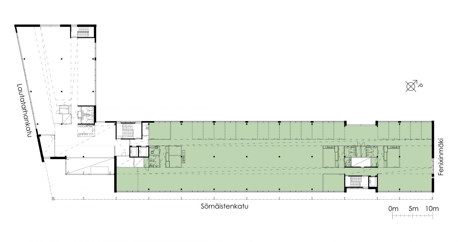 Monipuolinen ja ympäristöystävällinen toimitalo Sörnäisten ytimessä tarjoaa viihtyisän työympäristön, jossa palvelut tukevat arjen sujuvuutta. Talosta löytyy aulapalvelu, kuntosali sekä juuri uudistetut neuvottelutilat. Lisäksi kiinteistössä toimii oma leipomo-lounaskahvila. Ylimmässä kerroksessa sijaitsevat saunatilat ja kattoterassi, jotka tuovat lisämukavuutta työpäiviin. Kiinteistön omasta parkkihallista pääsee suoraan toimistokerroksiin, mikä helpottaa liikkumista.