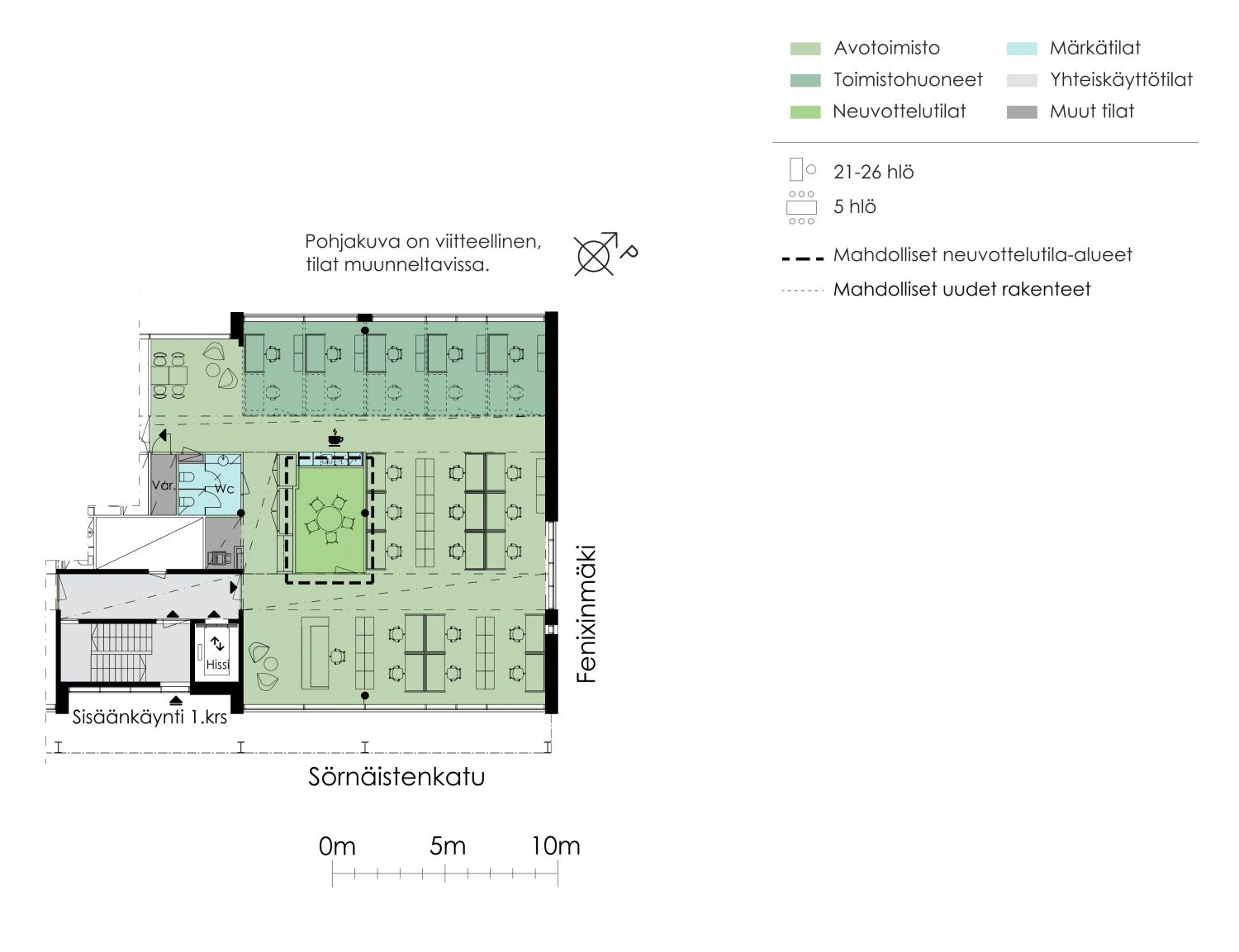 Täyden palvelun toimitilaa Sörnäisten ytimessä.