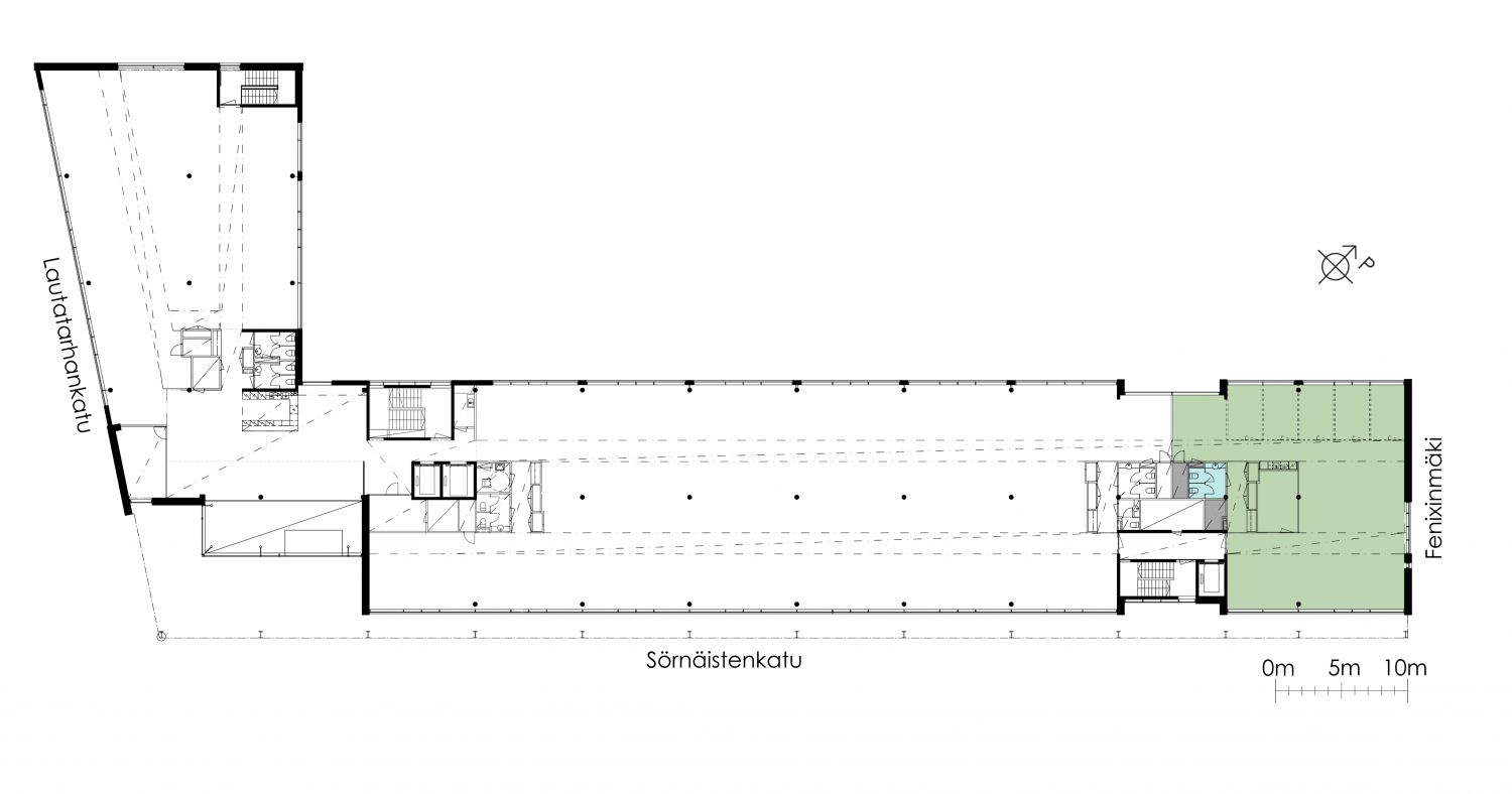 Monipuolinen ja ympäristöystävällinen toimitalo Sörnäisten ytimessä tarjoaa viihtyisän työympäristön, jossa palvelut tukevat arjen sujuvuutta. Talosta löytyy aulapalvelu, kuntosali sekä juuri uudistetut neuvottelutilat. Lisäksi kiinteistössä toimii oma leipomo-lounaskahvila. Ylimmässä kerroksessa sijaitsevat saunatilat ja kattoterassi, jotka tuovat lisämukavuutta työpäiviin. Kiinteistön omasta parkkihallista pääsee suoraan toimistokerroksiin, mikä helpottaa liikkumista.