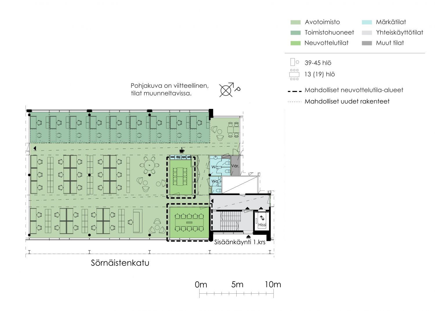 Täyden palvelun toimitilaa Sörnäisten ytimessä.