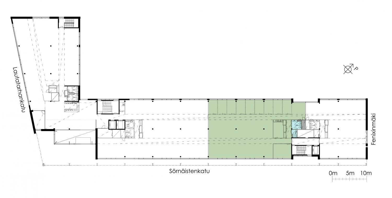 Monipuolinen ja ympäristöystävällinen toimitalo Sörnäisten ytimessä tarjoaa viihtyisän työympäristön, jossa palvelut tukevat arjen sujuvuutta. Talosta löytyy aulapalvelu, kuntosali sekä juuri uudistetut neuvottelutilat. Lisäksi kiinteistössä toimii oma leipomo-lounaskahvila. Ylimmässä kerroksessa sijaitsevat saunatilat ja kattoterassi, jotka tuovat lisämukavuutta työpäiviin. Kiinteistön omasta parkkihallista pääsee suoraan toimistokerroksiin, mikä helpottaa liikkumista.