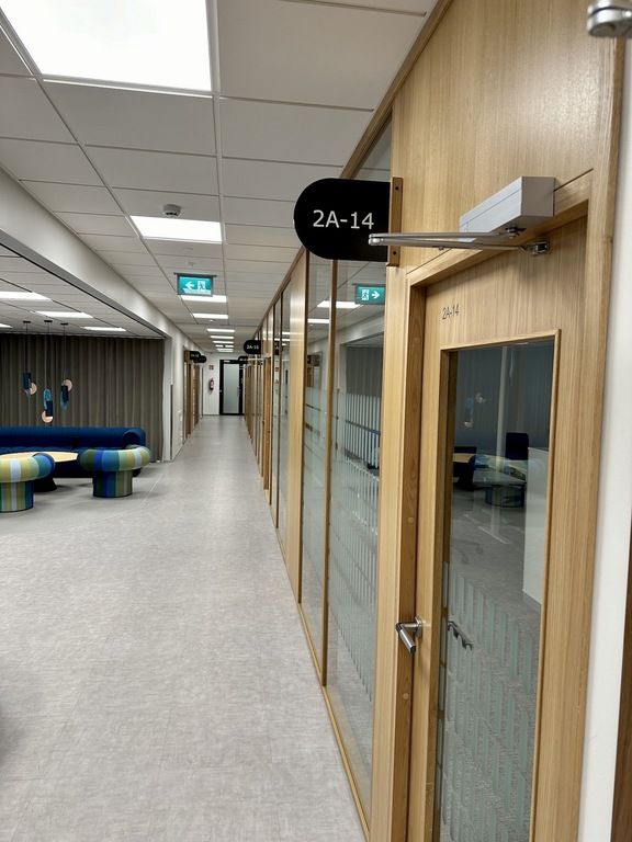 Kiinteistön 2. kerroksessa on pientoimistoalue, josta on mahdollista vuokrata erikokoisia pientoimistotiloja. Kerroksessa on yhteiskäyttöiset wc-, keittiö- ja neuvottelutilat. Vapautuminen 1.5.2026. Kuvat ovat kiinteistön pientoimistoista ja yleisistä tiloista.