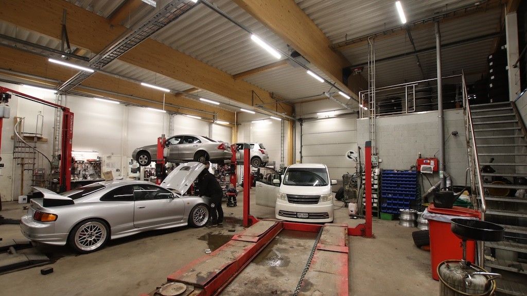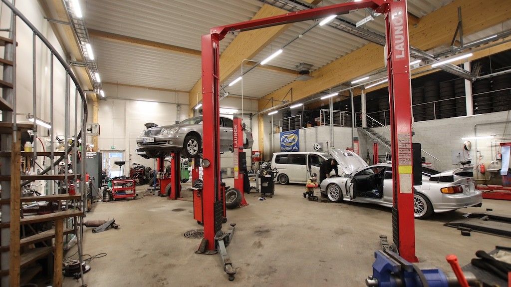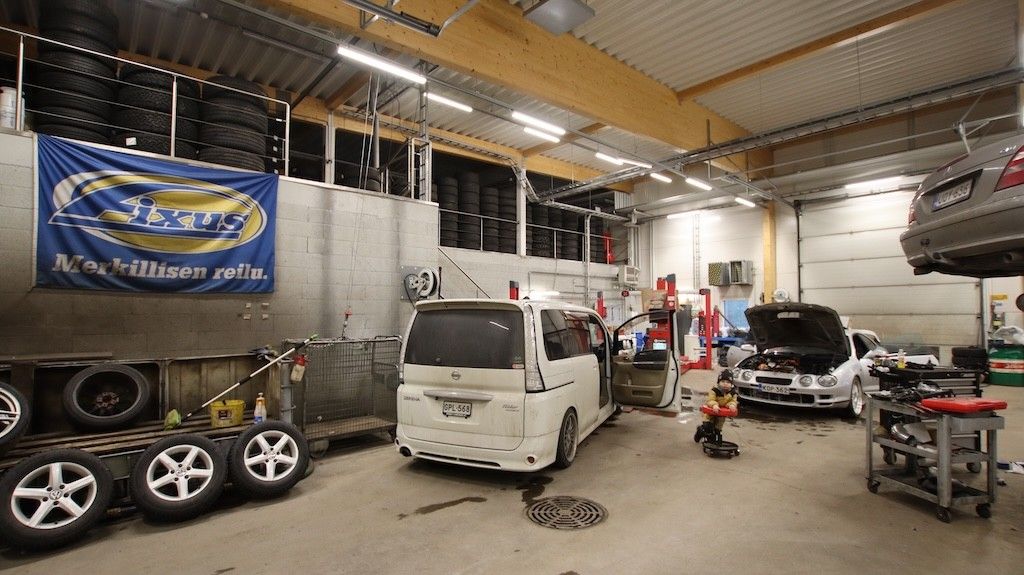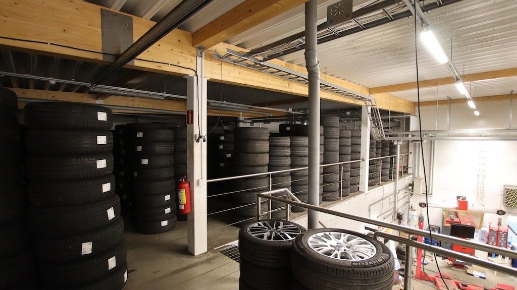 Tila on suunniteltu tehokkuutta silmällä pitäen: neliöt on optimoitu viidelle autokorjauspaikalle, ja kokonaisuutta täydentää kätevä parvi, joka toimii erinomaisesti joko rengasvarastona tai varaosien säilytykseen.