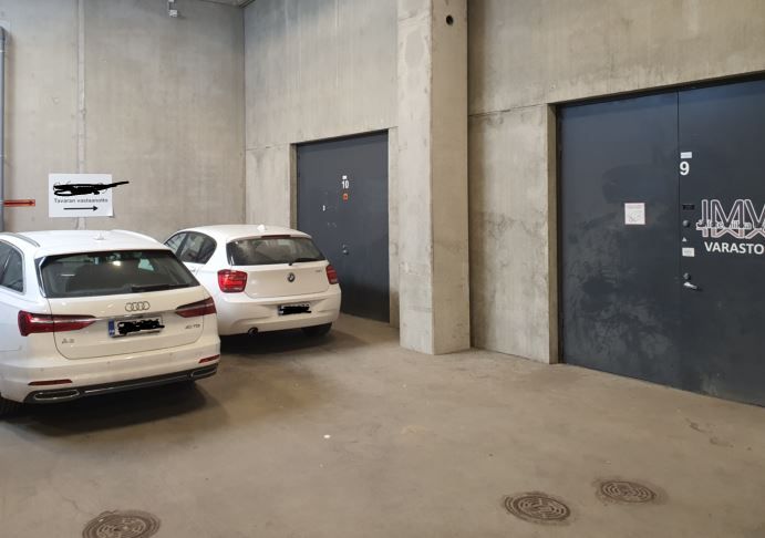 Varastotilan eteen pääsee pakettiautolla ja vähän isommallakin jakeluautolla. 2 autopaikkaa.