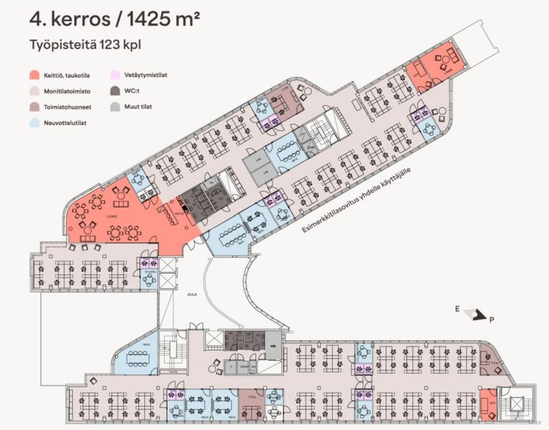 Vuokrataan edustava 1.432m2 monitilatoimisto 2. kerroksessa. Pääkonttoritason toimistotalossa on tyylikkäät tilat ja hyvät oheispalvelut, mm. aula-vastaanotto, neuvottelutilat, auditorio, lounasravintola, kuntosali, sosiaalitilat ja autohalli.