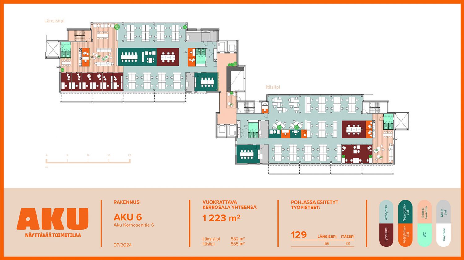 AKU on kolmen kiinteistön moderni ja laadukas kokonaisuus, joka tarjoaa muuntojoustavat toimitilat sujuvaan hybridityöhön. Valoisat ja avarat tilat mukautuvat yrityksen tarpeisiin ja tukevat viihtyisää, tehokasta arkea, jossa vuokralainen on keskiössä.
