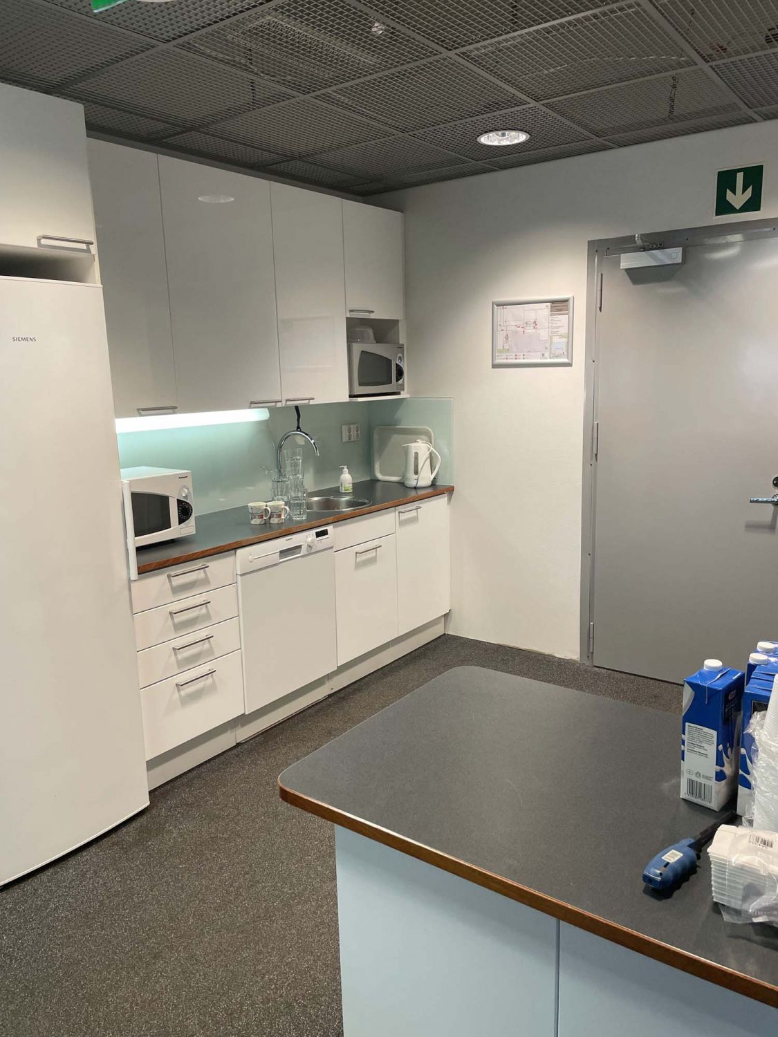 Tilaan on ulkoa kaksi sisäänkäyntiporrasta ja hissi. Tarvittaessa tavarakuljetuksiin käytettävissä lastauslaituri. Tilaan sisältyy erillinen pesu- ja pukuhuone, jossa on tila jopa noin 50 henkilölle.