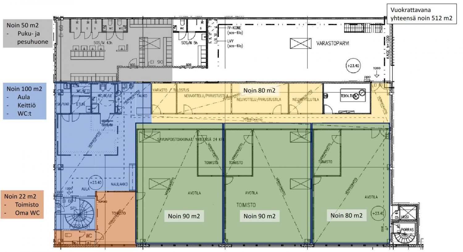 Huippusiistiä nykyaikaista toimistotilaa Kauklahdessa logistiikka/varastorakennuksen toisessa kerroksessa. Tilat tehty noin kaksi vuotta sitten. Toimistotila voidaan jakaa esimerkisi kolmelle ryhmälle, jolloin sosiaaltilat ja keittiö olisivat yhteiskäytössä.