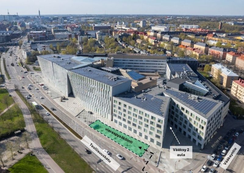 Kiinteistöllä on 800 auton parkkihalli, jossa myös sähkölatauspaikkoja.
