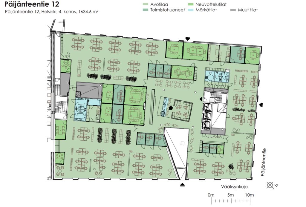 Modernia pääkonttoritason toimistotilaa Helsingin Vallilassa.