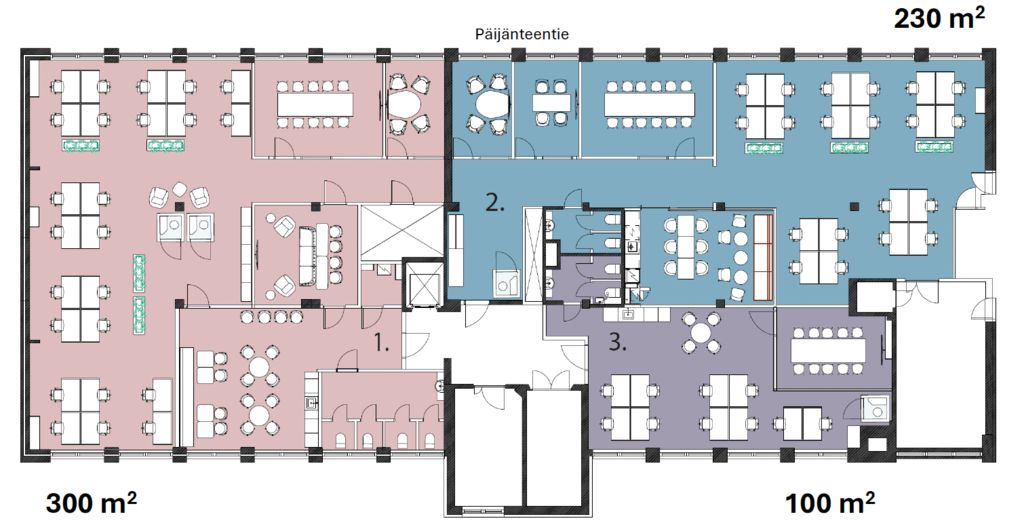 Siistiä pääkonttoritason toimistotilaa Helsingin Vallilassa.