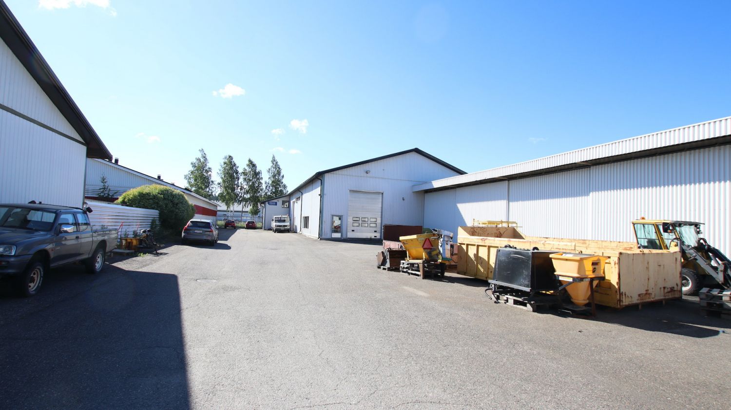 Tilakokonaisuus jossa 5,5m korkea hallitilan lisäksi n. 80m2 matalampi osa, jossa sijaitsee toimisto- varasto ja sosiaalitilat. Hallissa lattiakaivot, Kaukolämpö sekä painovoimainen ilmanvaihto. Nosto-ovia 2 kpl k. 4,5 x lev. 3.30m. Pihapiirissä 230m²2 kylmäkatos.
