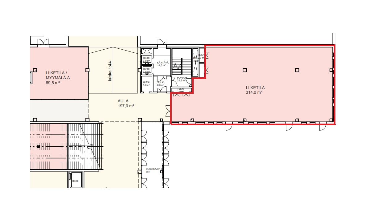 Vuokrattavana 1. krs rakenteilla oleva liiketila 314 m2