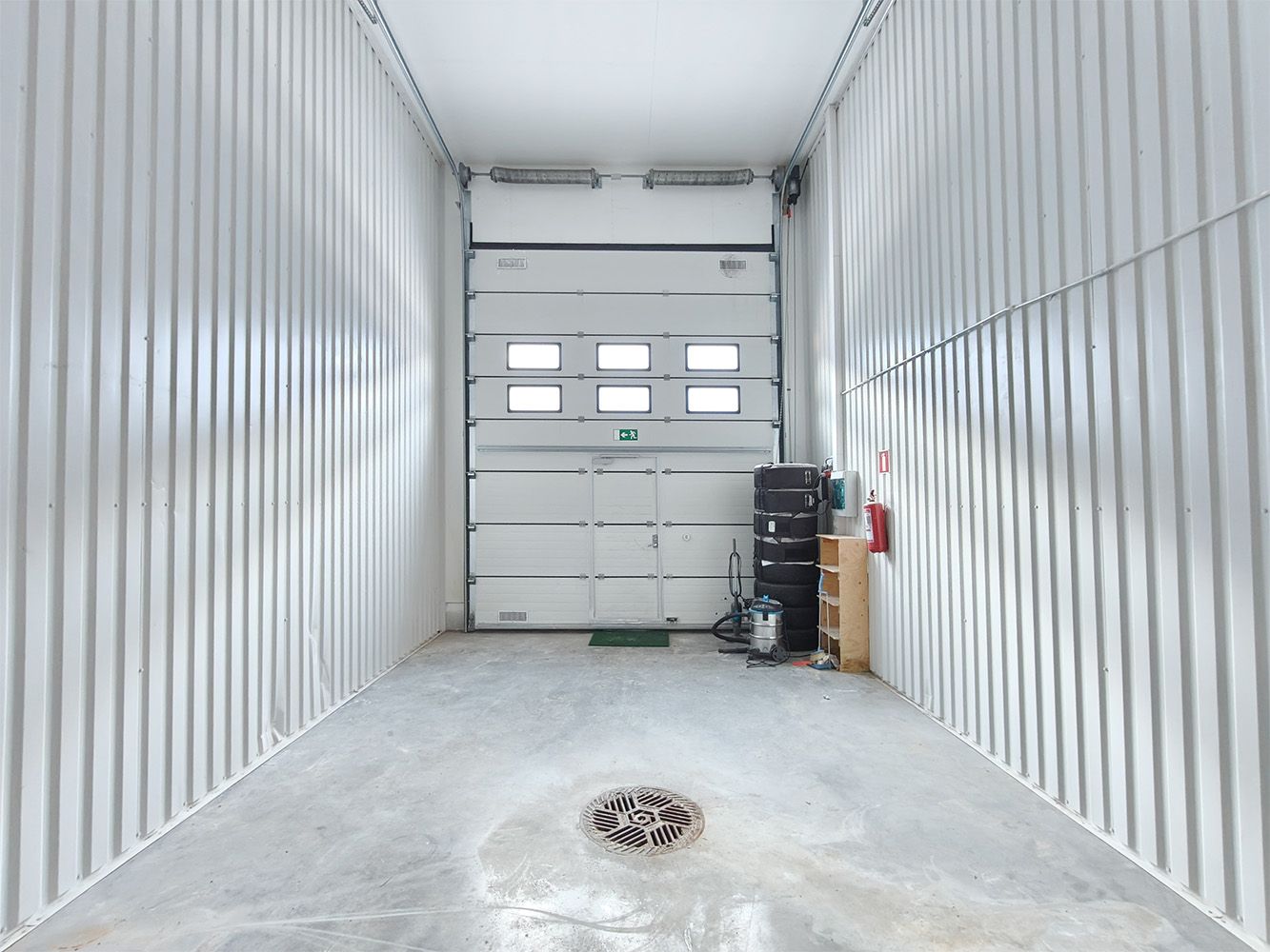 Hallissa on sähkökäyttöinen nosto-ovi (L4 m x K4,3 m), jossa on erillinen käyntiovi. Tilan varusteluun kuuluu wc, käsienpesualtaalla (tulee lämmintä vettä), lattiakaivo sekä vesipiste.