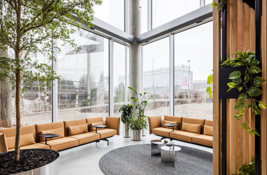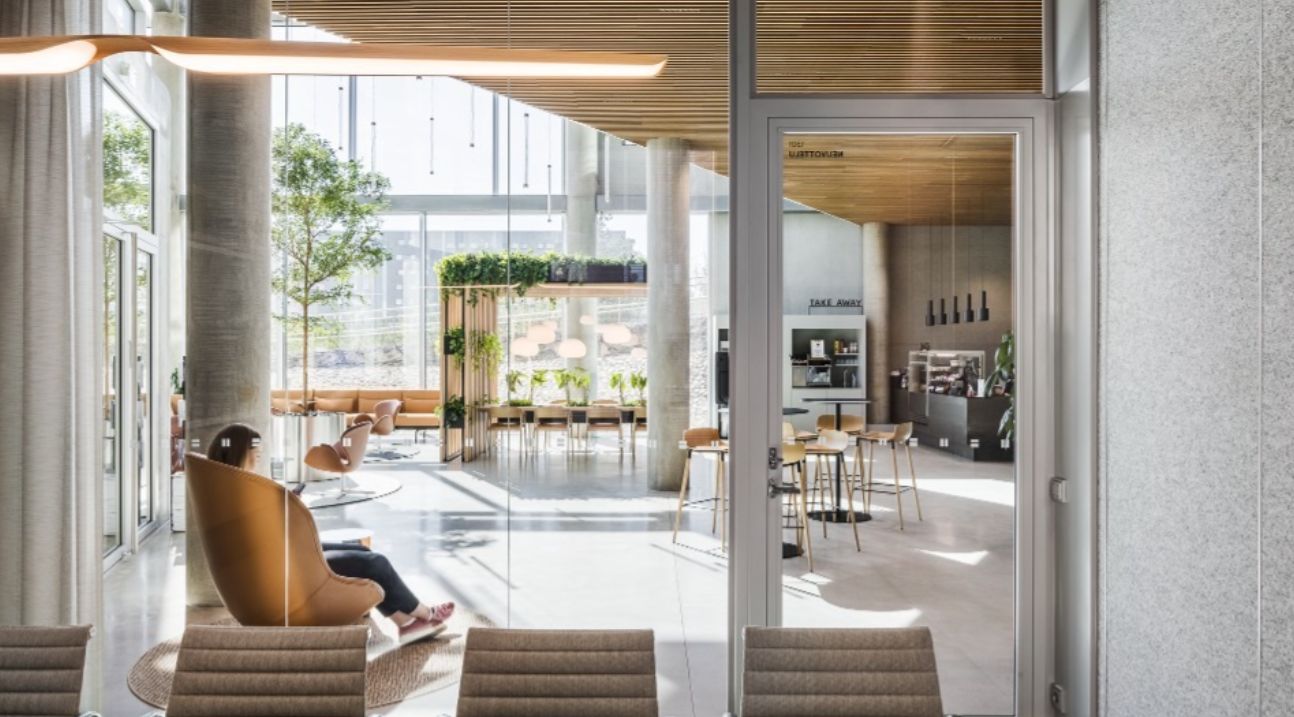 Energiatehokas, käyttöön ja tarpeeseen reagoiva valaistuksenohjaus, laadukkaat akustiikkaratkaisut, tasainen, vedoton viilennys ja optimoitu ilmanvaihto tukevat tehokasta, tuottavaa työskentelyä.