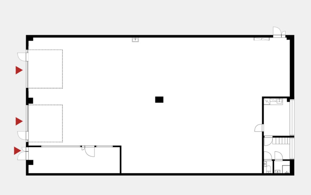Tämä avara 331 m² liiketila sijaitsee kiinteistön katutasossa. Tilassa oma keittiö ja wc. Tilassa on kaksi nosto-ovea, ja se on sisään ajettava. Tilan korkeus on noin 4,7 metriä ja lattian kantavuus on noin 500 kg/ m². Tila soveltuu hyvin autoiluun, moottoriurheiluun tai varaosamyyntiin keskittyneille toimijoille.