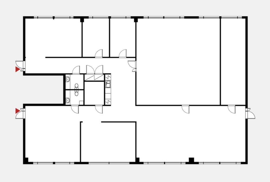 Tämä 313 m² toimistotila sijaitsee E-talon 1. kerroksessa. Toimistossa on huoneita, avotilaa sekä omat keittiö- ja wc-tilat. Osa tilasta on laboratoriotilaa, jossa on ESD-matto, toimiston puolella on tekstiililaattalattia ja käytäväseinät ovat lasia liukuovilla. Neliömäärä sisältää jyvityksen kiinteistön yhteisistä tiloista.