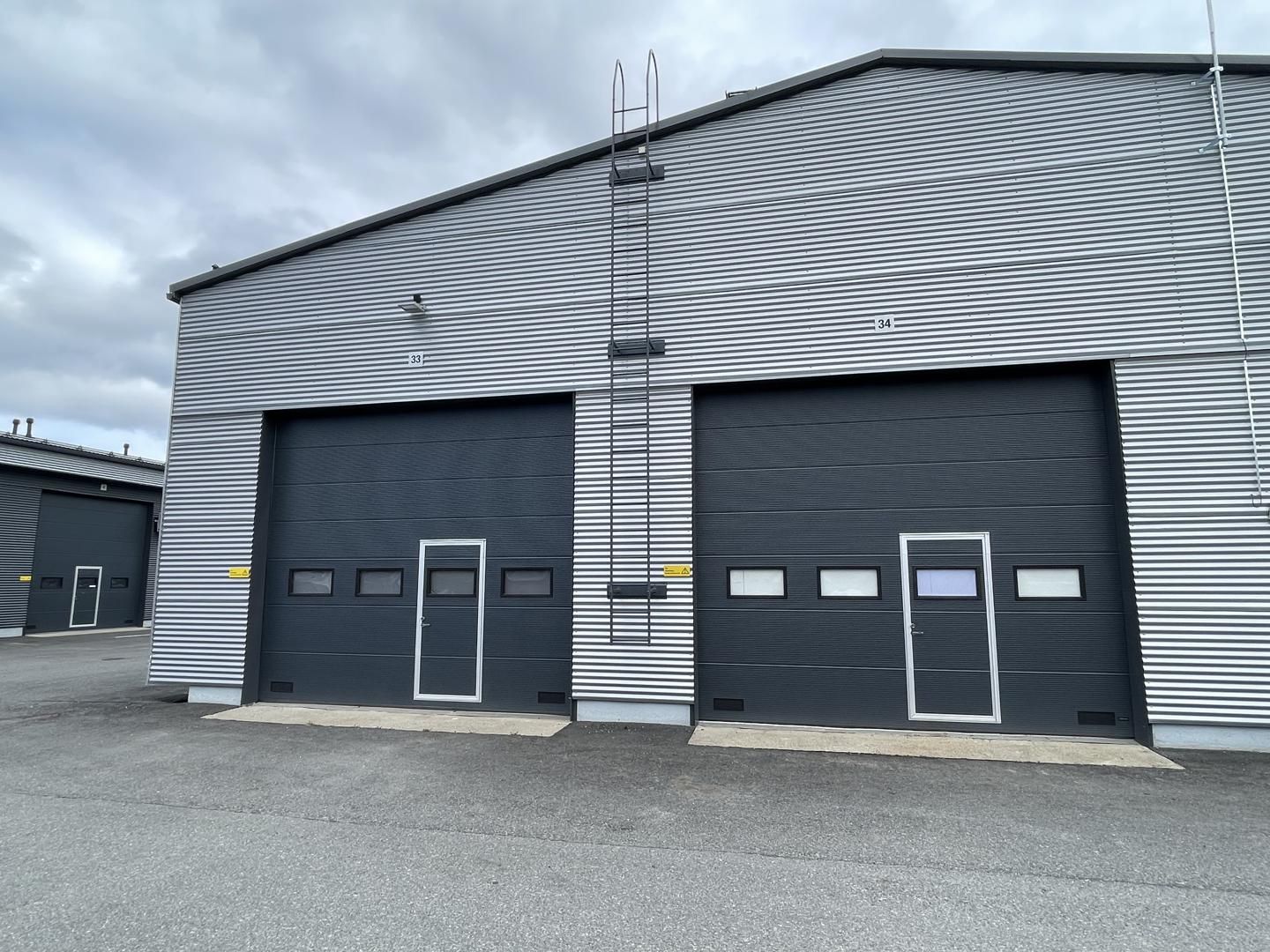 Kaksi korkeaa nosto-ovea (kulkuovi integroituna) – helppo sisäänajo pakettiautoille ja pienille kuorma-autoille.