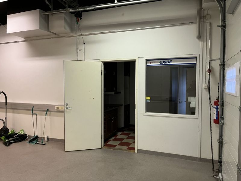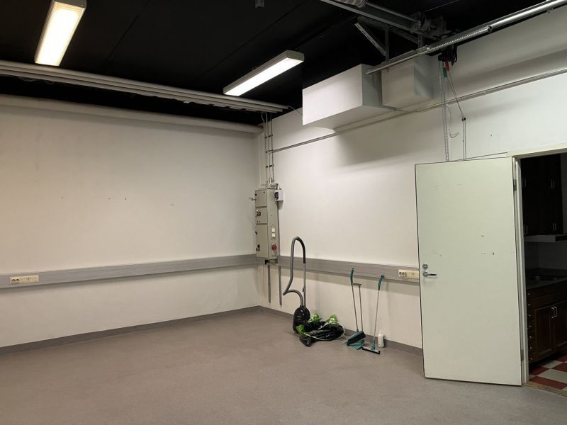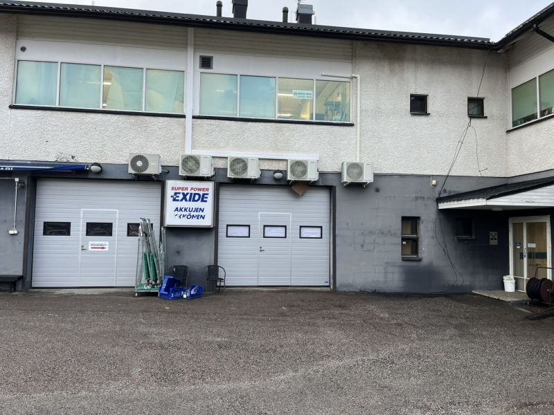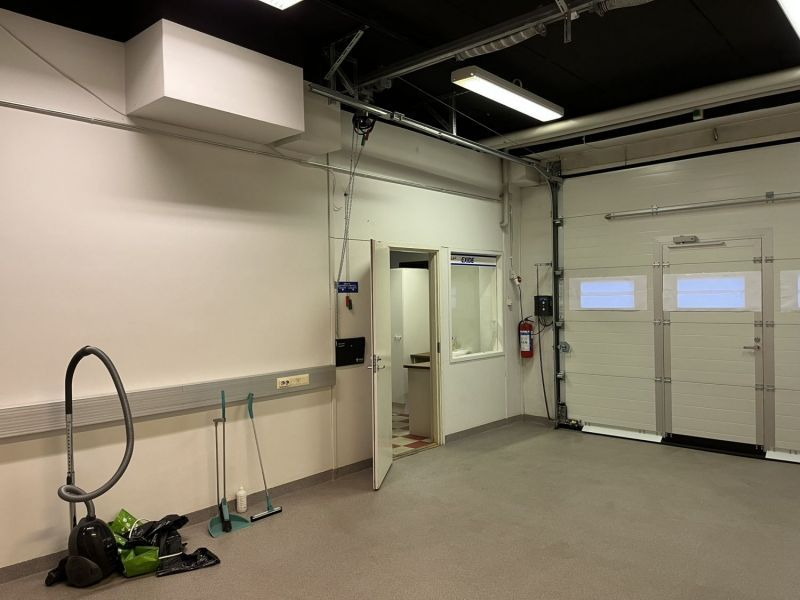 Nosto-ovellinen 42 m² varasto sekä avoin ja valoisa 91 m² toimisto.