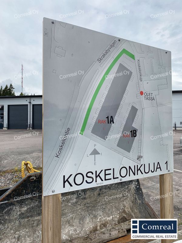 Kiinteistön sijaitsee Kehä III:n vieressä ja vilkkaan Koskelontien varrella.