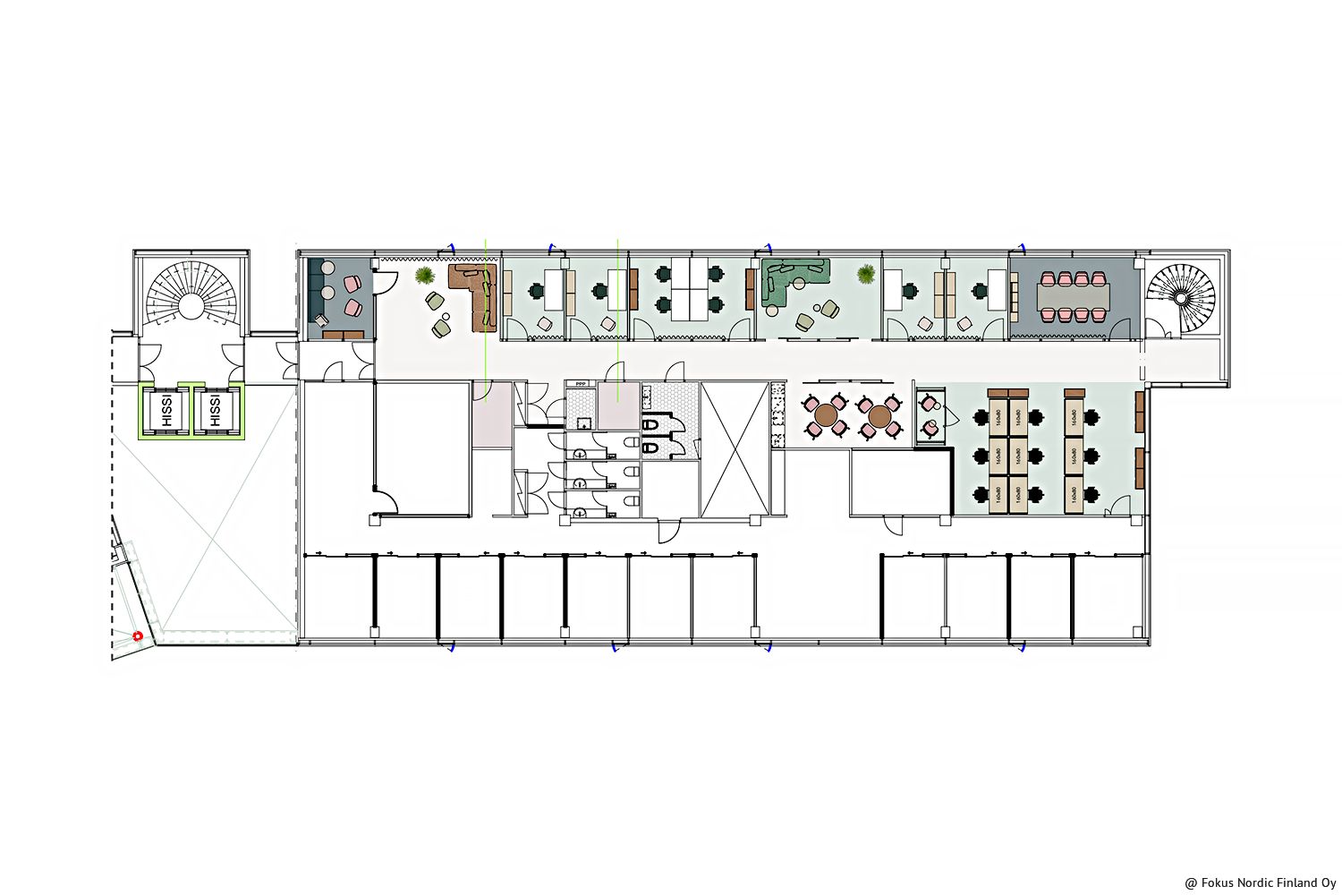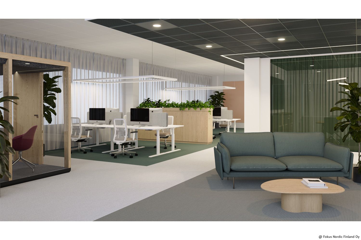 Tässä 4. kerroksen yksilöllisesti muunneltavasta toimitilasta vuokralainen saa aivan omannäköisen. Vuokralaisen tilatarpeiden mukaan tilasta saadaan tehtyä niin avonaista työskentelytilaa kuin yksittäisiä huoneita sisältävä toimistotila. Moven omat tilasuunnittelijat auttavat suunnittelemaan tilat juuri vuokralaisen tarpeiden mukaan. Tilamuutosoppaan mukaiset materiaalit ovat vuokralaisen valittavissa.