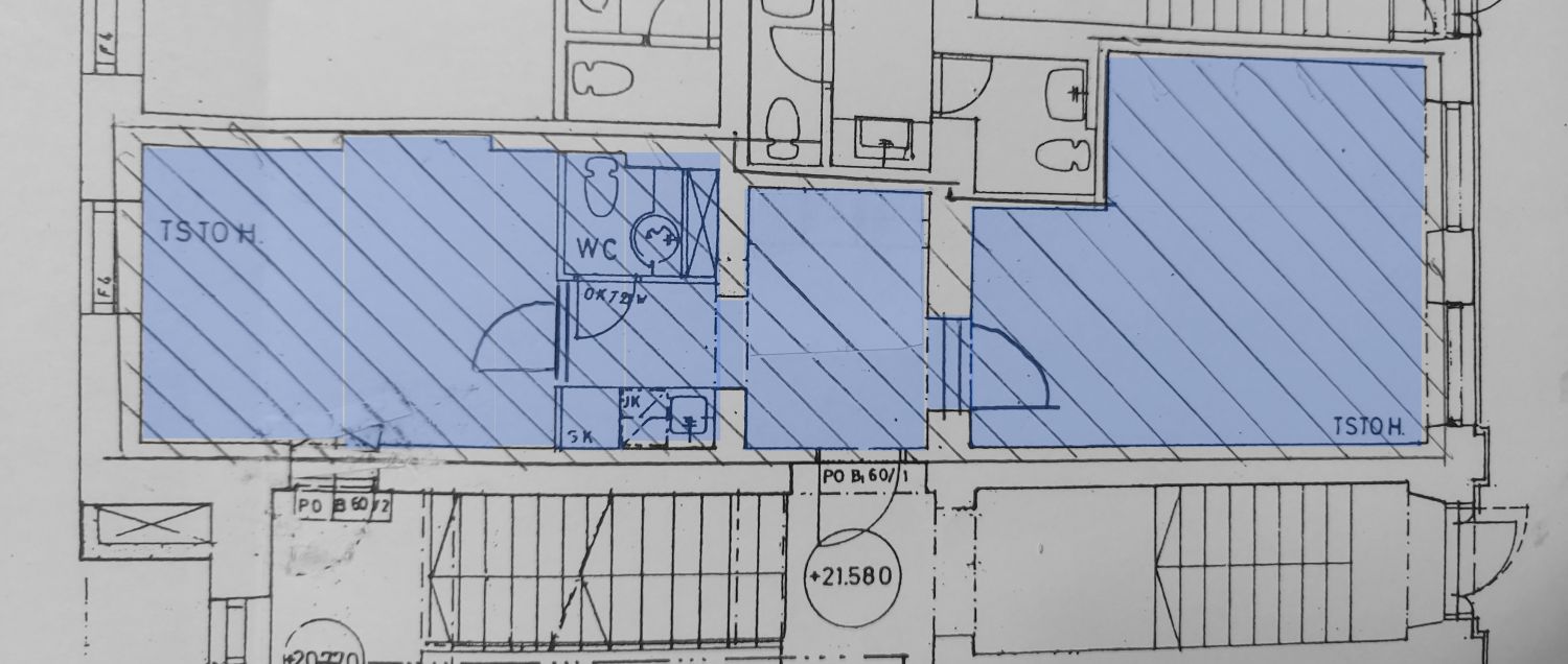 Arvokiinteistön katutasossa sijaitseva toimistotila, jossa on 2 huonetta + keittiö + wc.