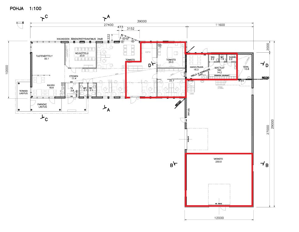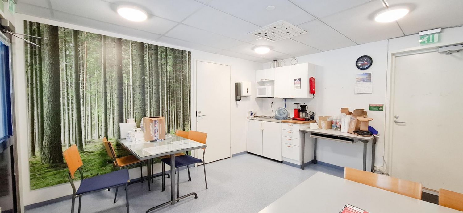 Toimisto-osa on muunneltavissa asiakkaan tarpeiden mukaan. Nyt tilat käsittää yhden toimistohuoneen ja isomman avotilan sekä neuvotteluhuoneen. Taukotilassa on kahvihuone/keittiö, pukuhuone, varasto ja wc/suihkuhuonetilat. Rakennus on rakennettu 2006 ja siinä on kaukolämpö.