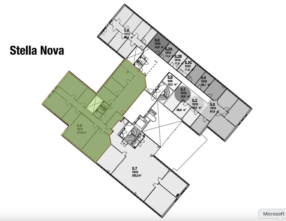 Tämä 275 m² toimistotila sijaitsee Nova-talon 5. kerroksessa.