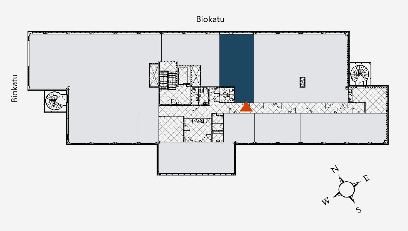 Vuokrattavana 3. kerroksen toimistohuone. Toimitilaan on käynti yhteiskäytävältä. Kerroksen keittiötila, taukotila, WC:t sekä varattava neuvottelutila ovat yhteiskäyttöisiä.
