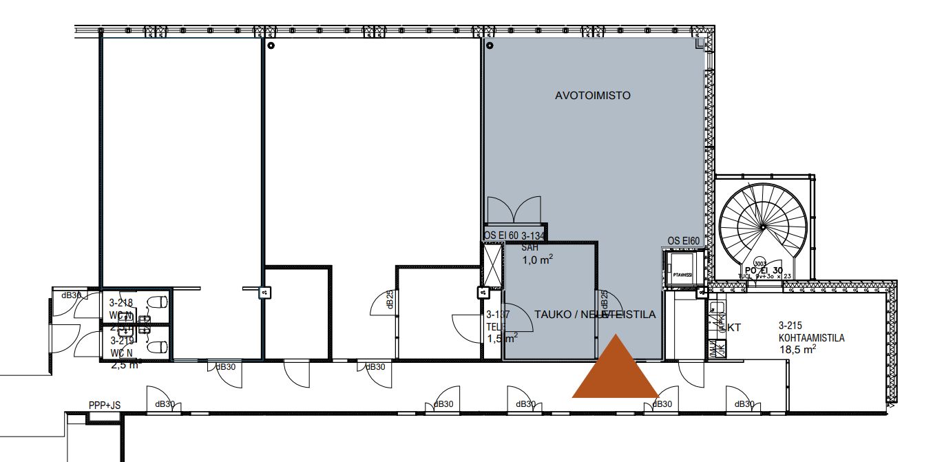 Vuokrattavana 3. kerroksen toimistotila.