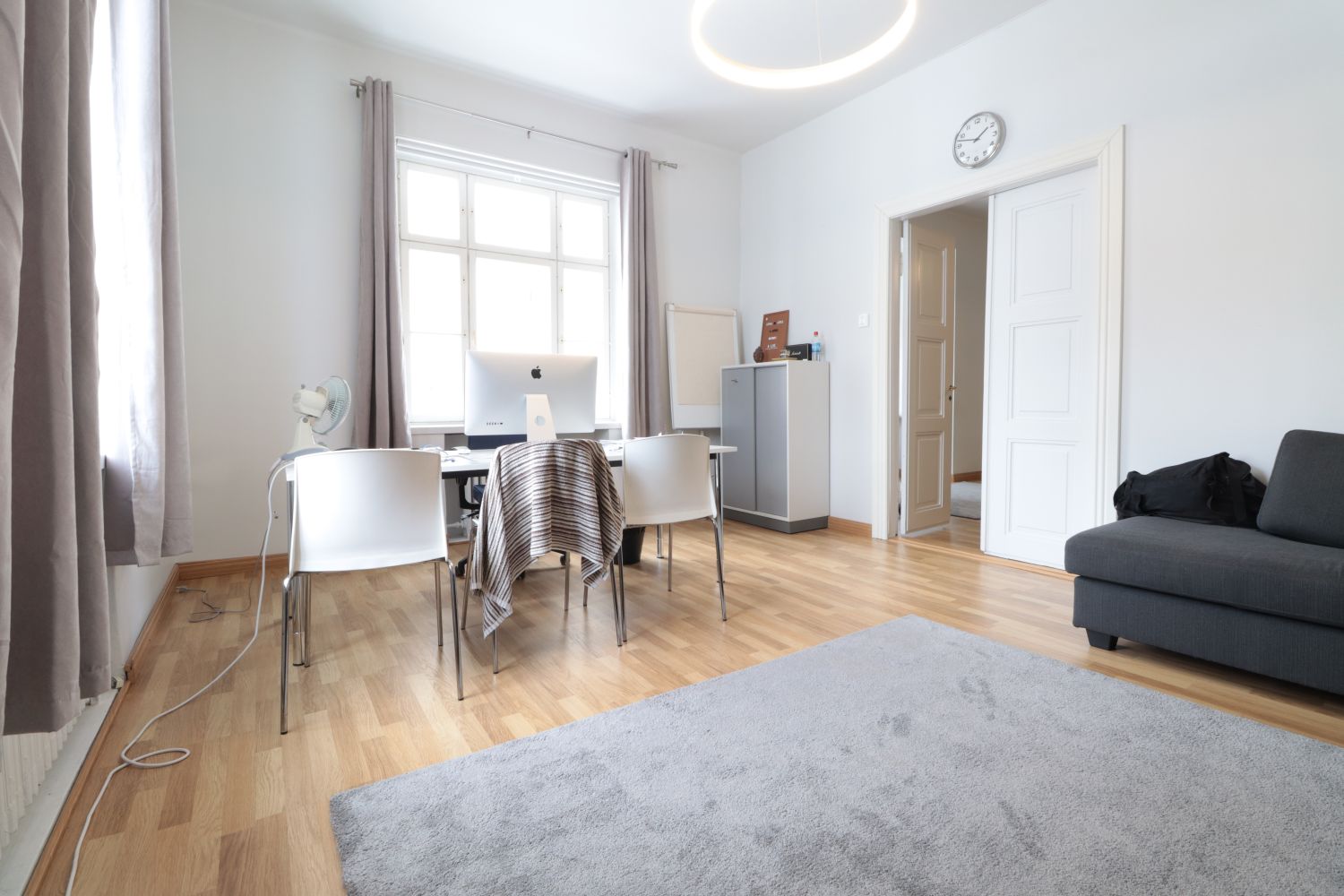 Tilat ovat tyylikkäät, tilavat ja valoisat. Tilaa on n. 151 m2 ja koostuu kolmesta erillisestä toimistohuoneesta, isommasta avotilasta sekä isosta keittiöstä. Tiloista löytyy myös varastokomero ja kaksi erilistä wc:tä, joista toinen on tilavampi inva-wc. Tyylikkäiden tilojen lisäksi huoneistolla on käytössä myös parveke, joka on Pakkahuoneenkadun puolella taloa.