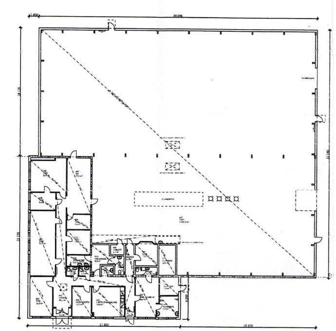 Kiinteistö on rakennettu vuonna 1986 ja sitä on osittain korotettu v. 2022. Korkea osuus on 10 m ja matala osuus on 5 m korkeaa tilaa.