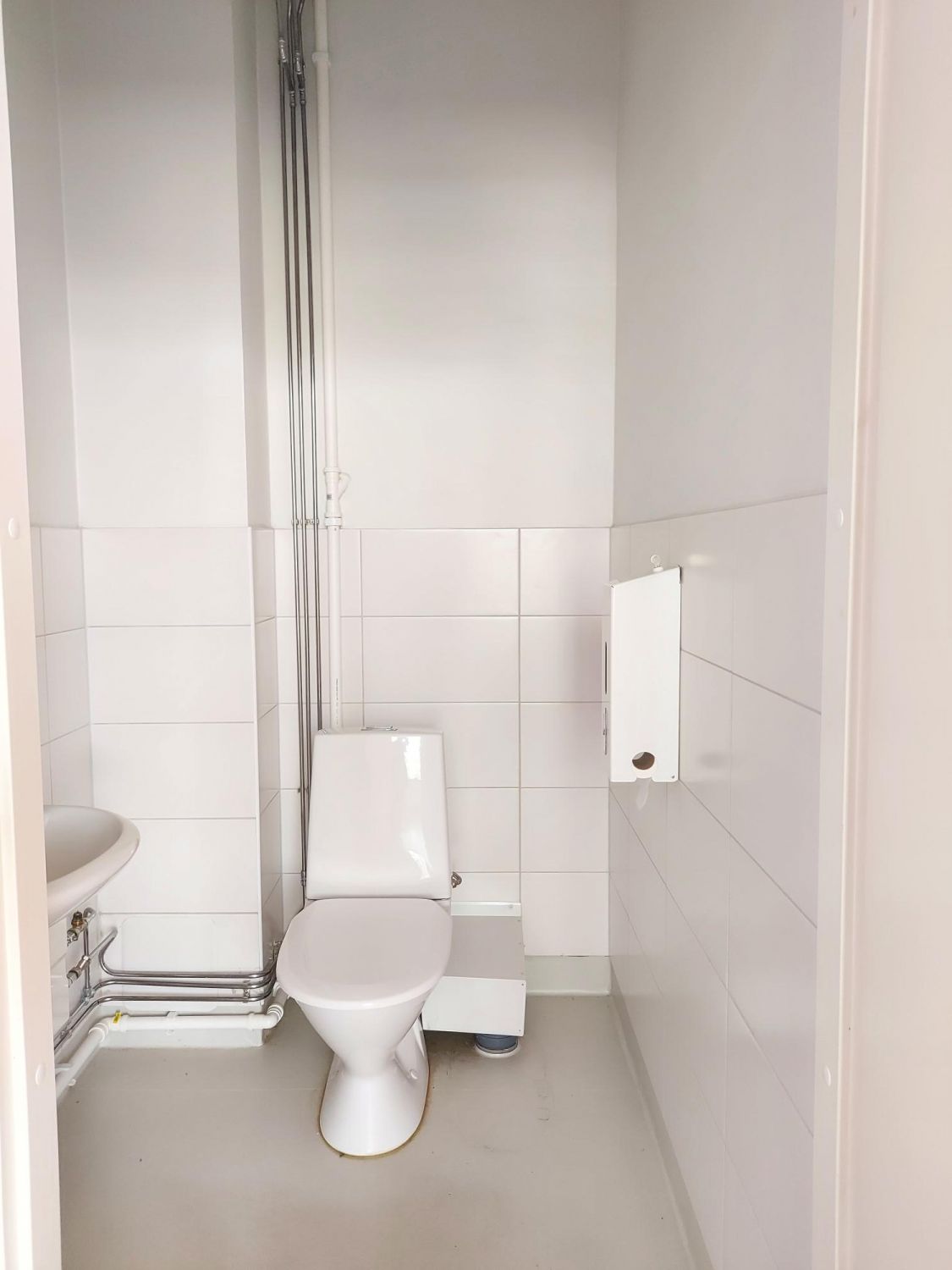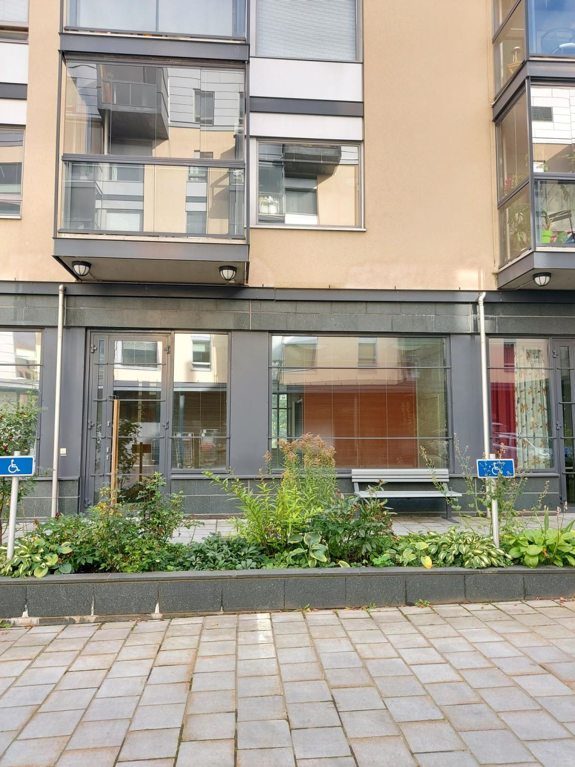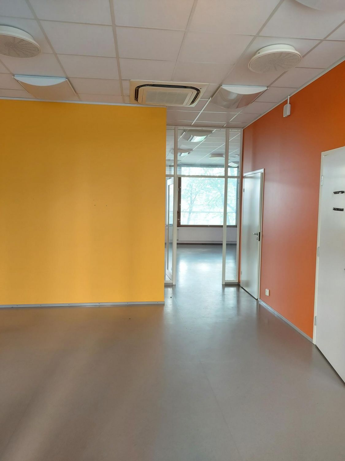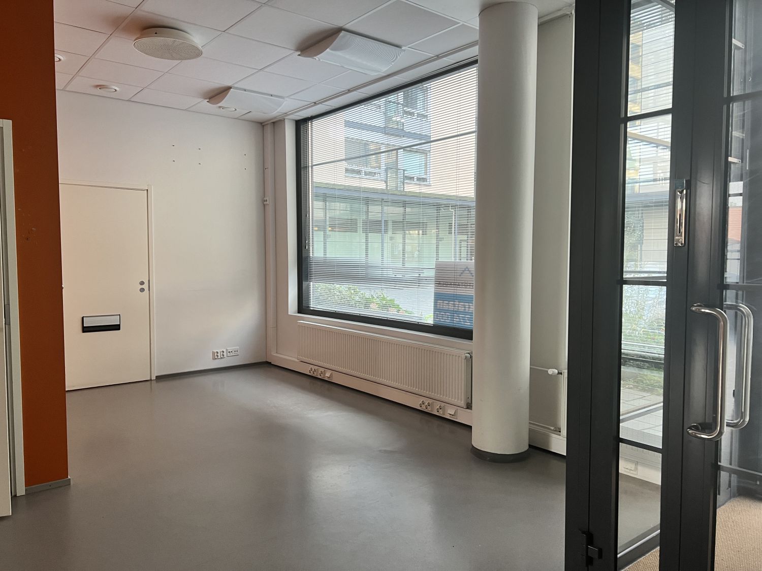 TIlaan oma sisäänkäynti kiinteistön sisäpihalta. Tilassa avotilaa, erillinen huone, pieni varasto, kaksi vessaa ja keittokomero.