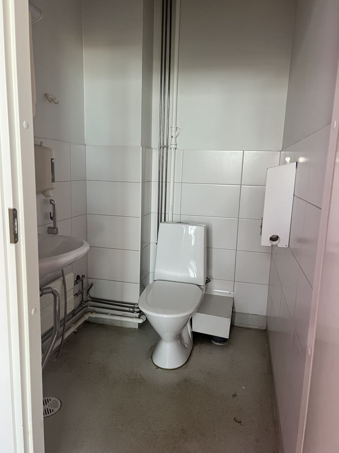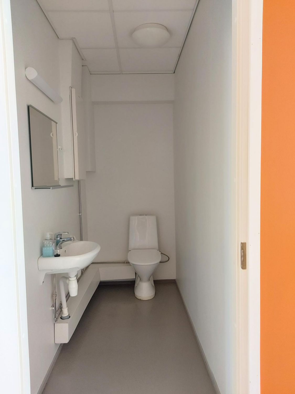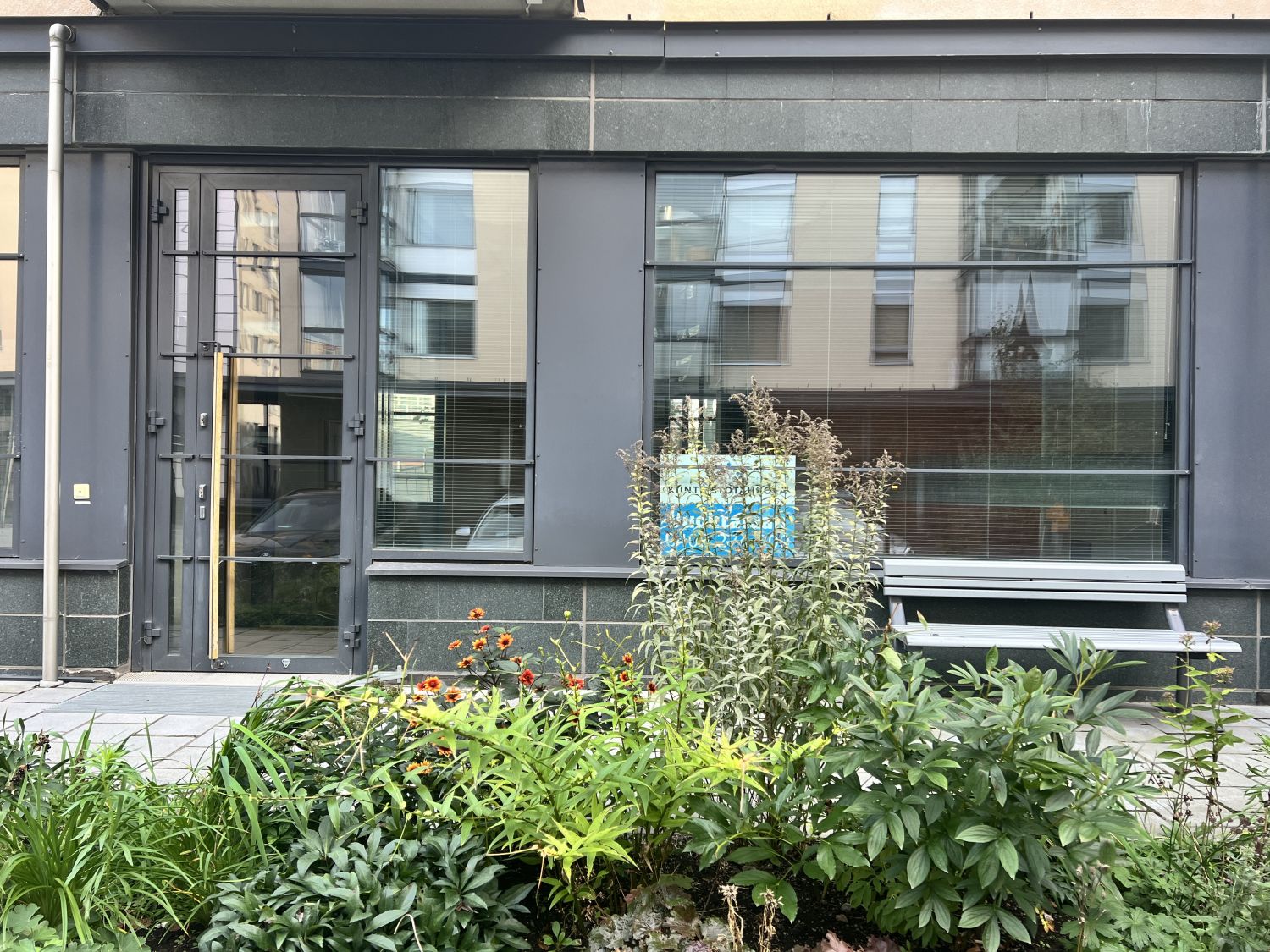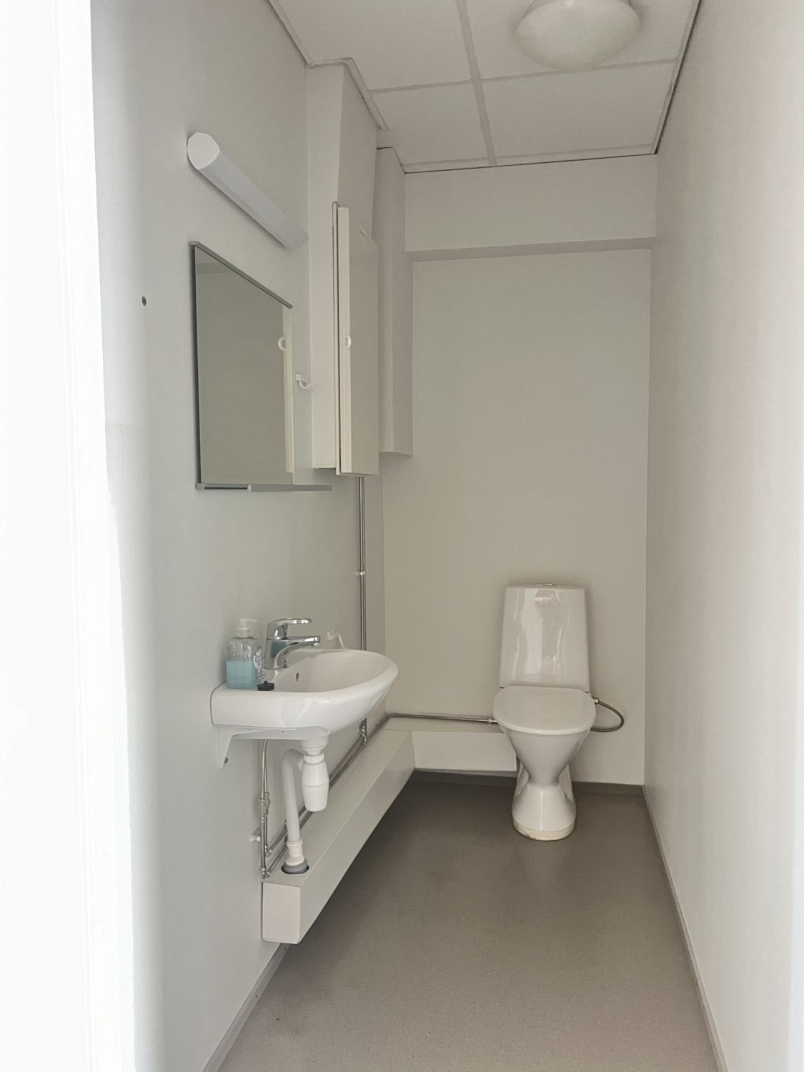 TIlaan oma sisäänkäynti kiinteistön sisäpihalta. Tilassa avotilaa, erillinen huone, pieni varasto, kaksi vessaa ja keittokomero.