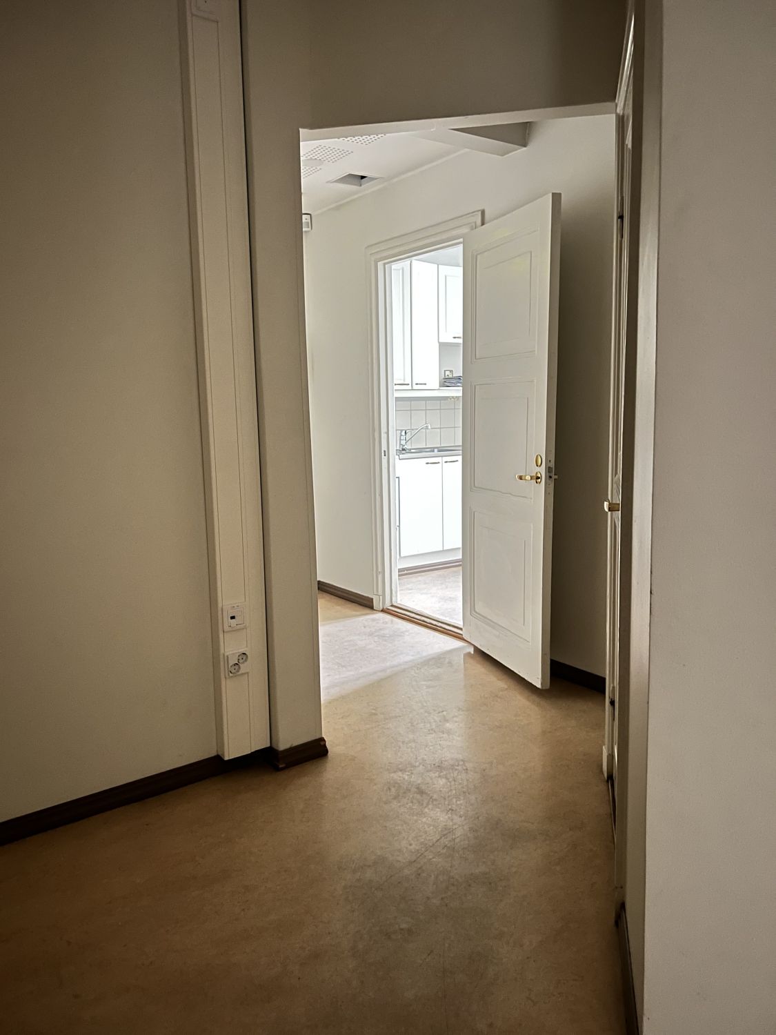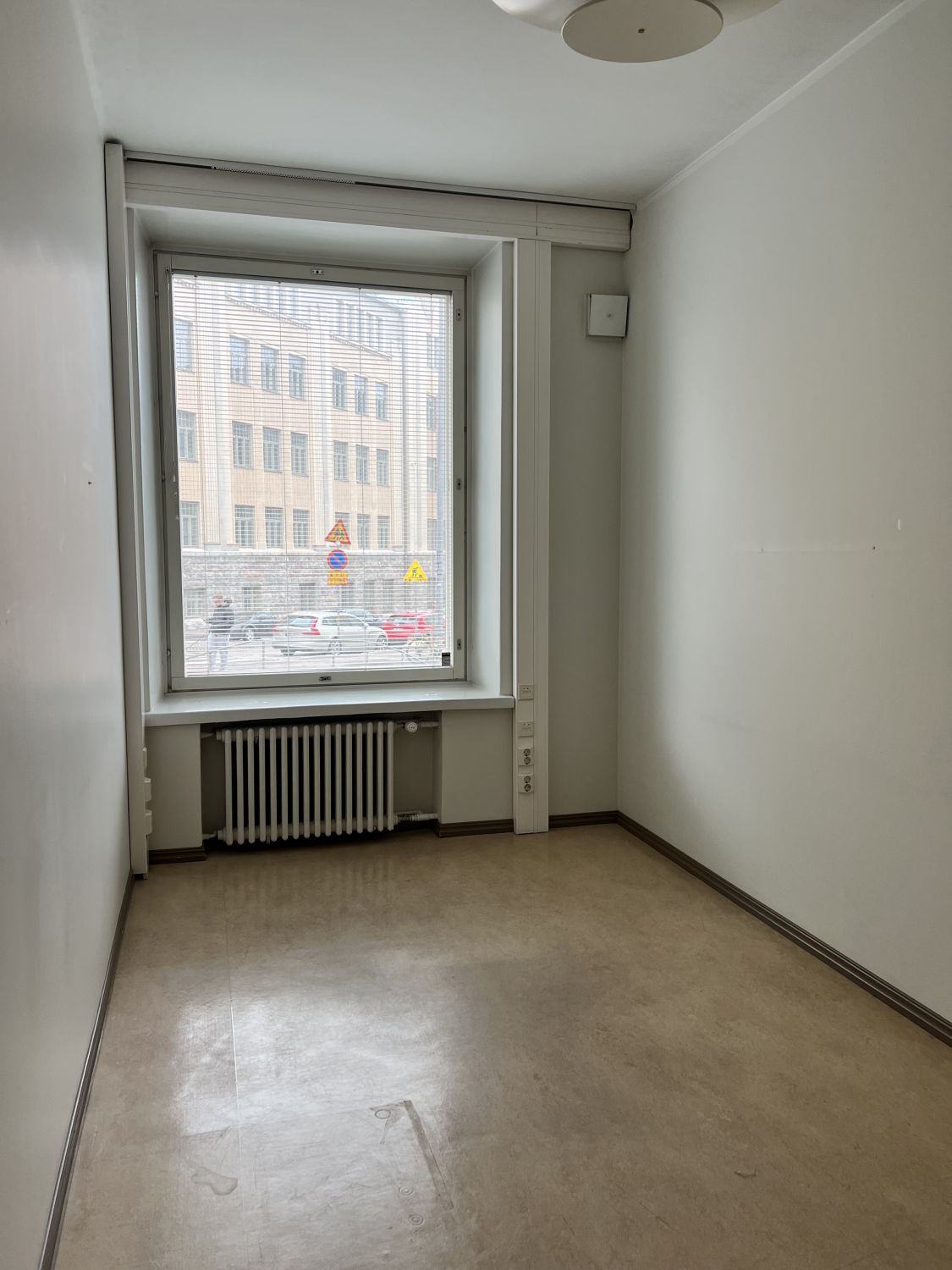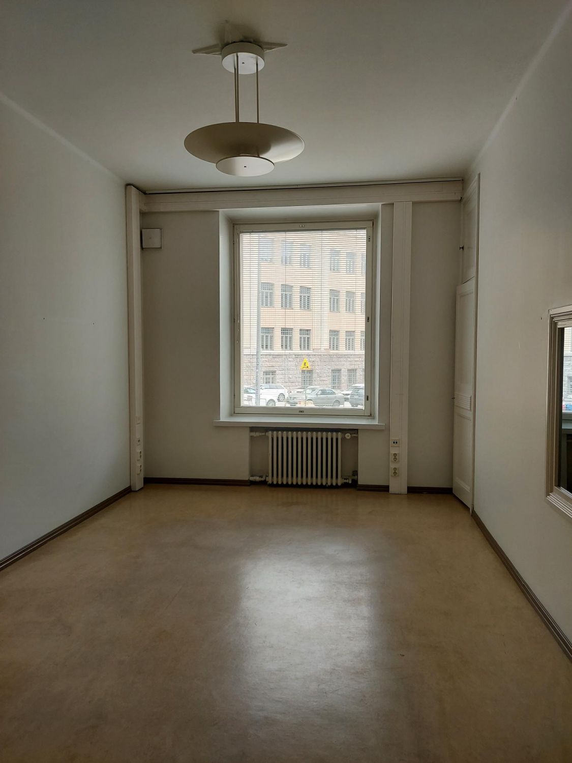 Toimistoon kulku taloyhtiön rappukäytävän kautta. Toimistossa huoneita yhtiön sisäpihalle ja kadulle.