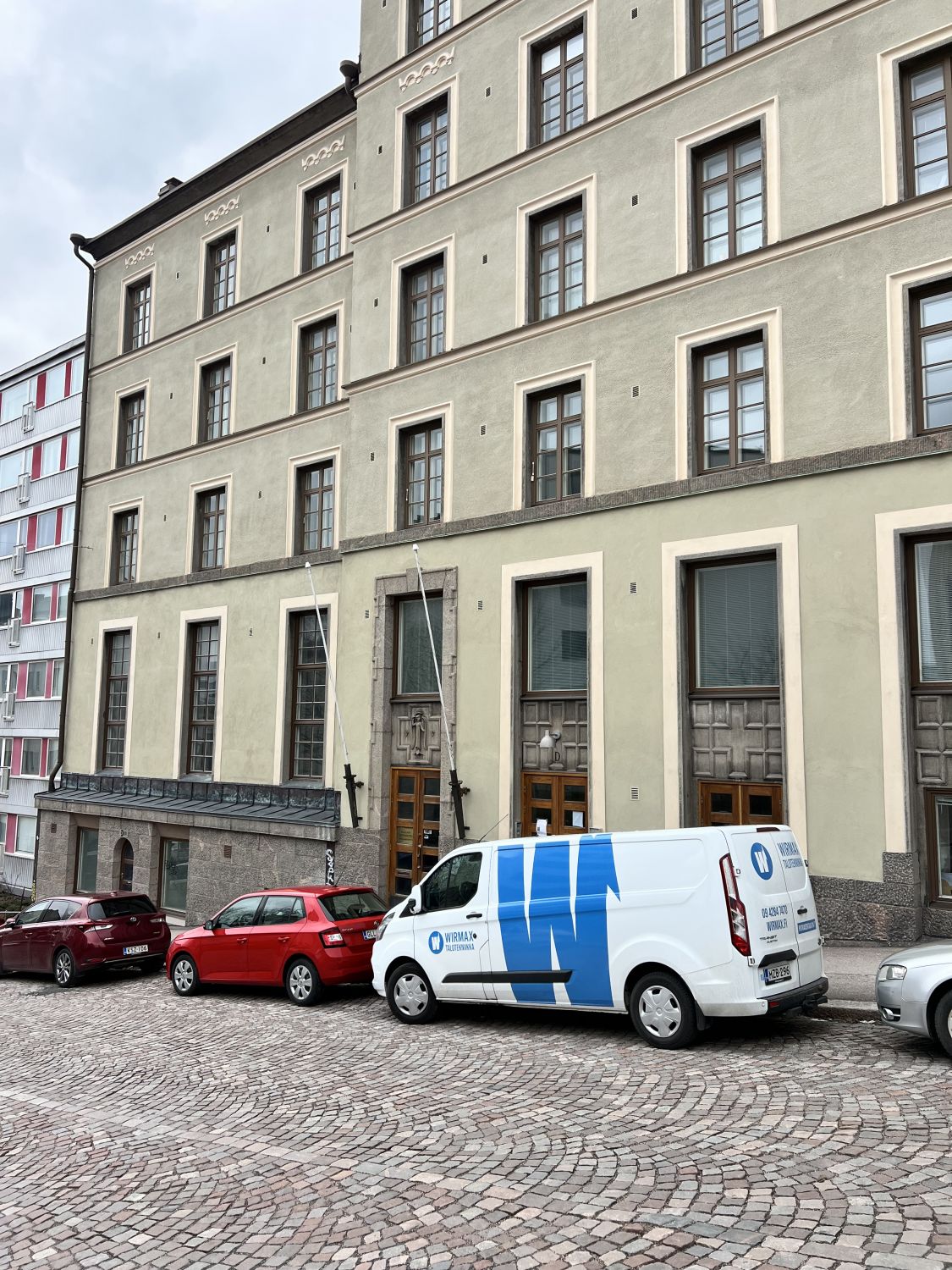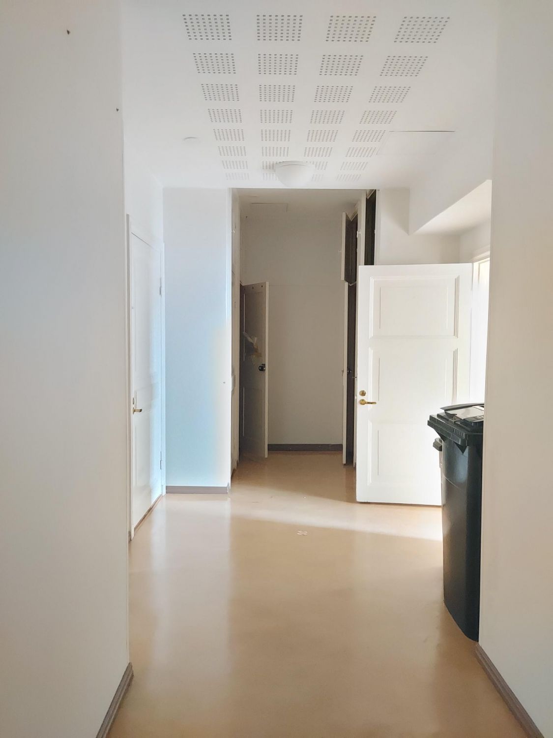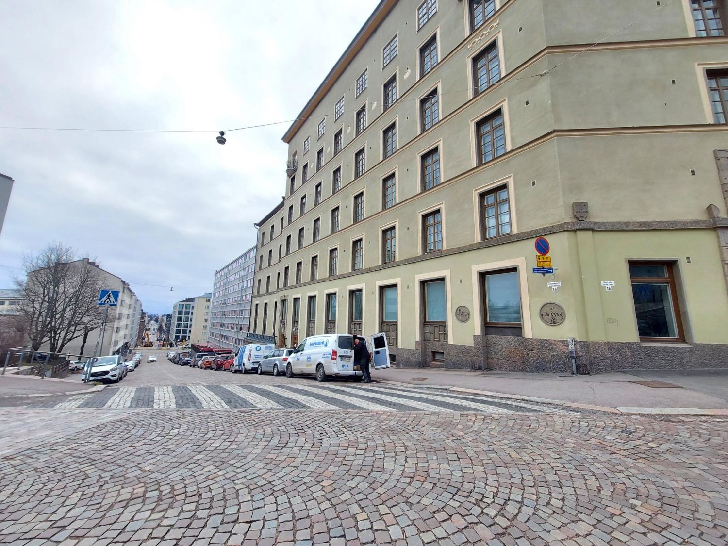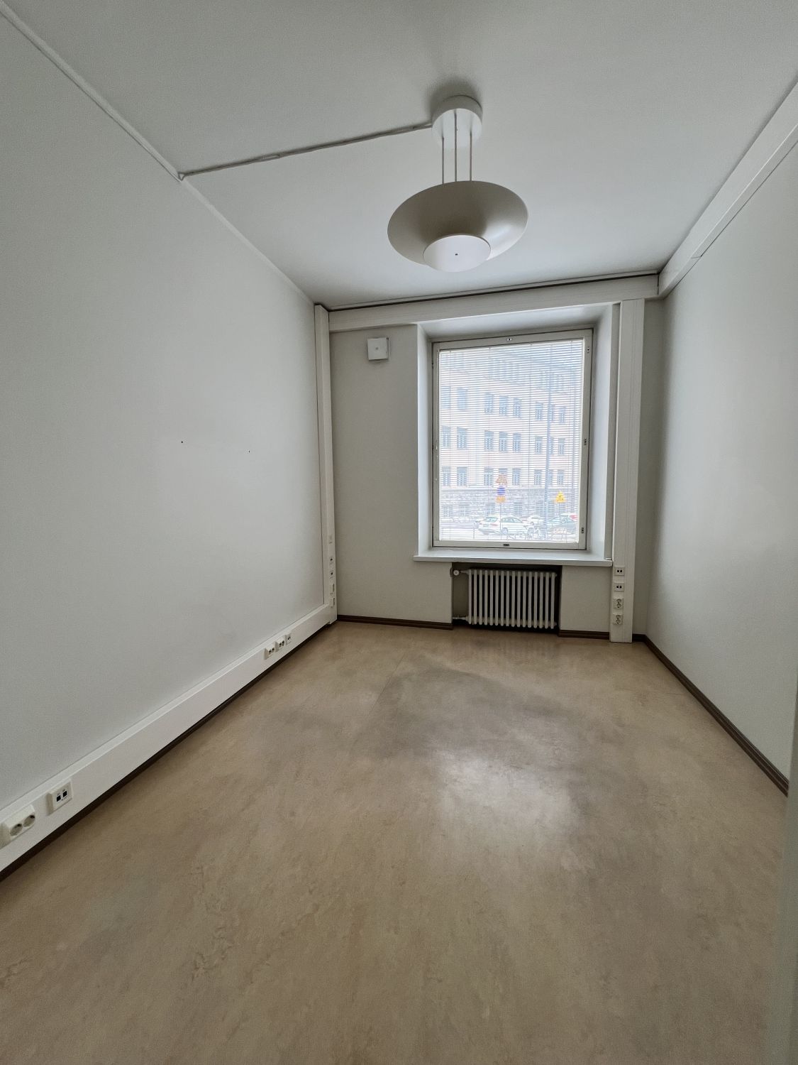 Toimistoon kulku taloyhtiön rappukäytävän kautta. Toimistossa huoneita yhtiön sisäpihalle ja kadulle.