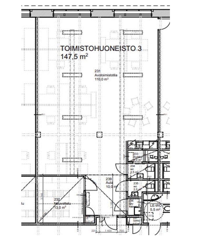 Vapautumassa monikäyttöistä toimistotilaa E-rapun 2. kerroksesta. Tilan koko on 147m2. Se koostuu avotilasta, neuvotteluhuoneesta ja omista wc-tiloista.