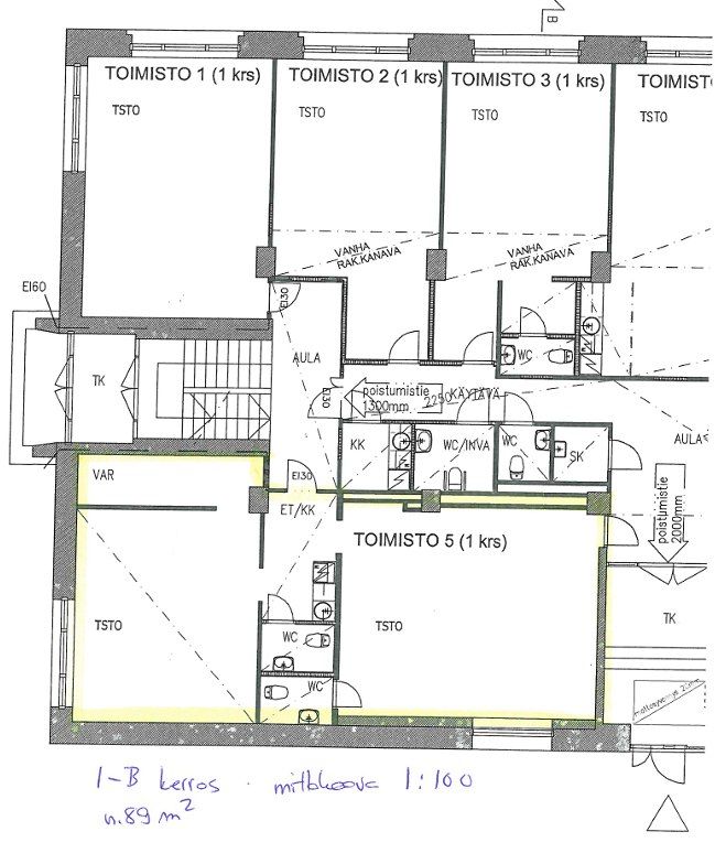 Vapautumassa monikäyttöistä toimistotilaa B-rapun 1. kerroksesta. Tilan koko on 89m2. Se koostuu kahdesta toimistohuoneesta sekä wc-tiloista.