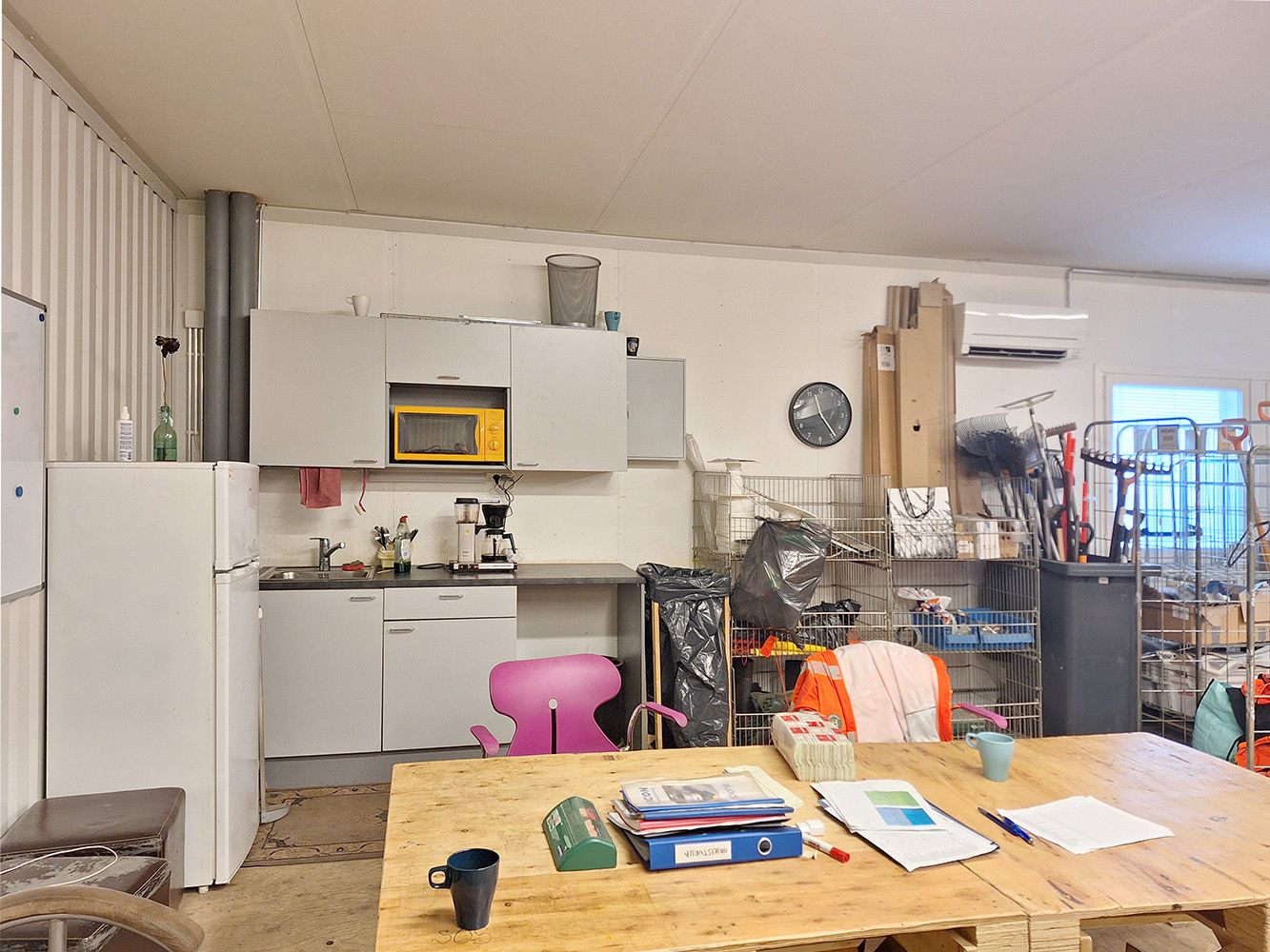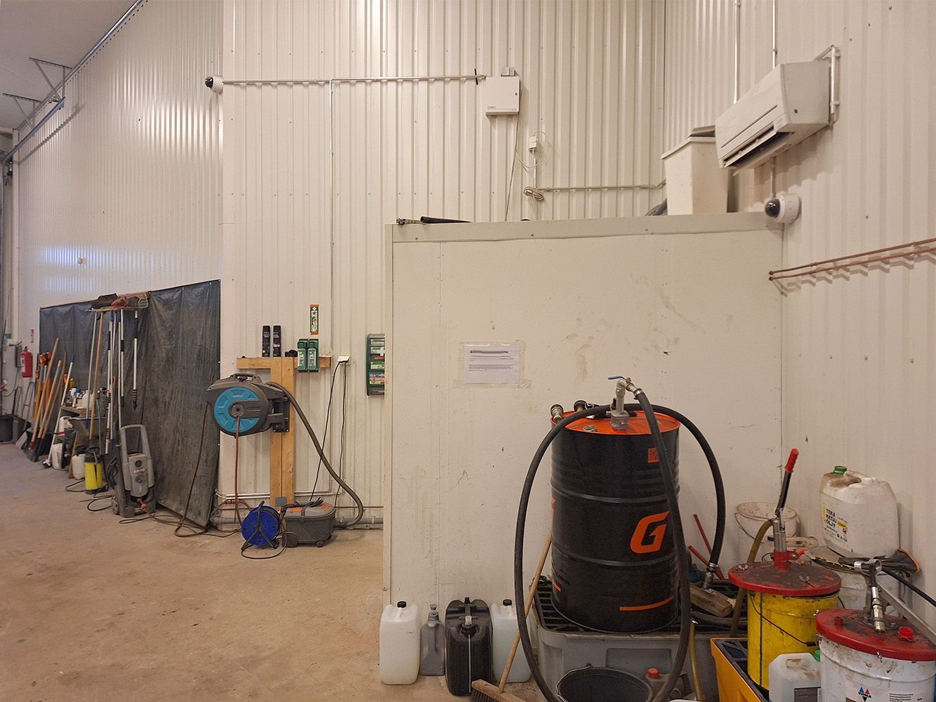 Kunto, varusteet ja palvelut: Hyväkuntoinen tila. Käyntiovellinen nosto-ovi, lattiakaivo, ilmalämpöpumppu, vesipiste, wc, minikeittiö, parvi